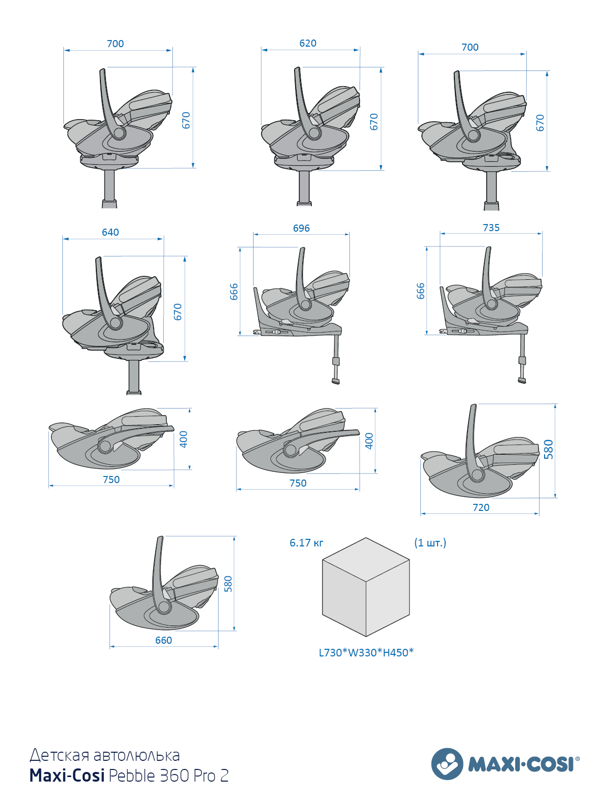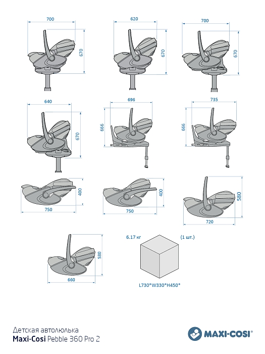 Размеры автолюльки при установке на базу: длина 70см, высота с поднятой ручкой 64см