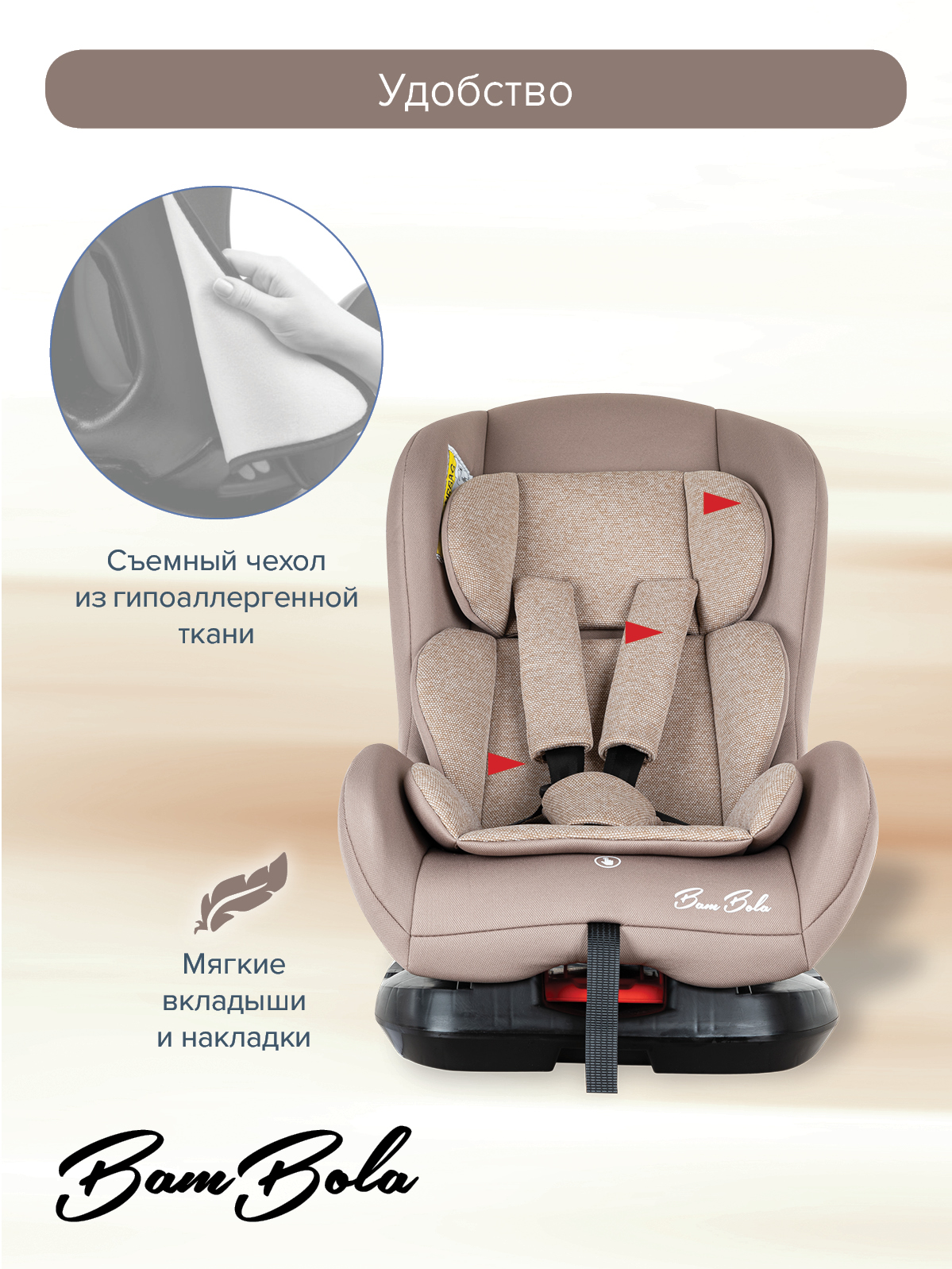 Благодаря ортопедической форме спинки и регулировки наклона автокресла в пяти положениях, мягкому вкладышу и накладкам внутренних ремней безопасности ребенку удобно и комфортно в поездке.