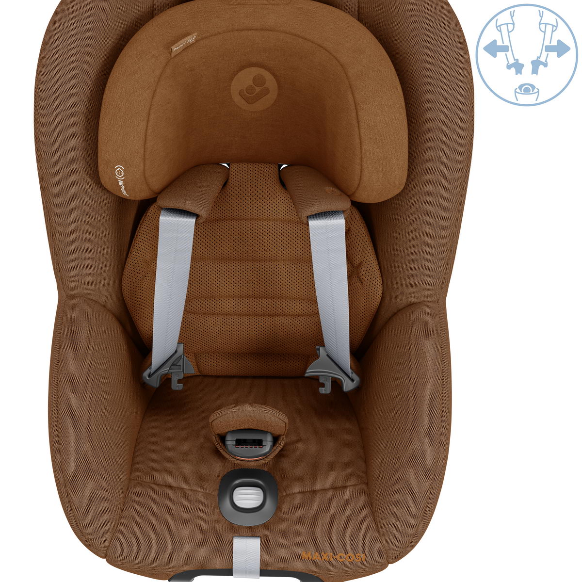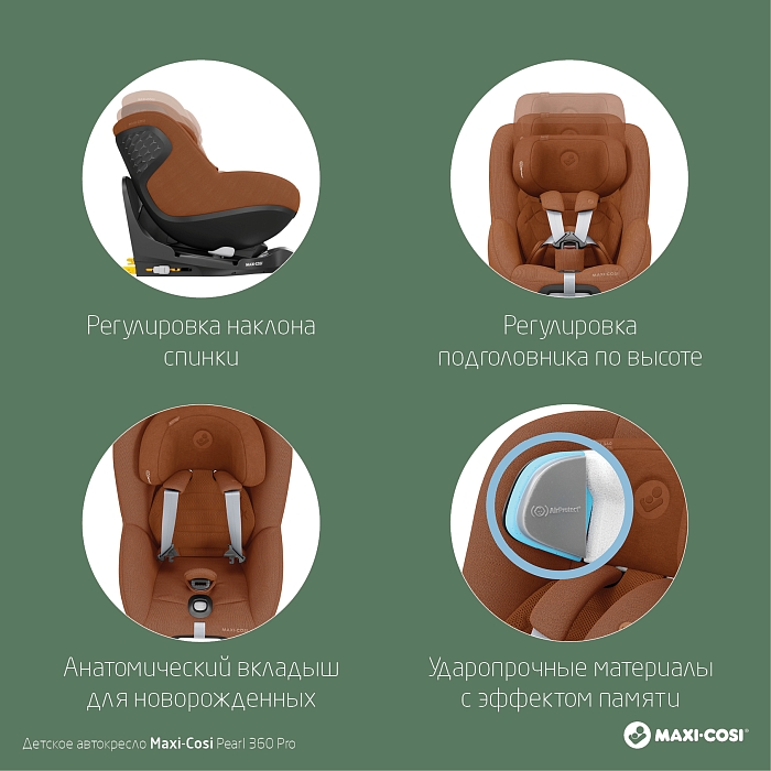 - Pearl 360 Pro разработан, чтобы расти вместе с вашим ребенком, имеет девять регулируемых положений подголовника и регулируемые ремни безопасности.
