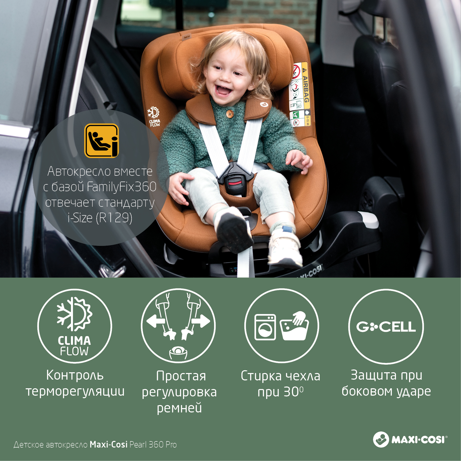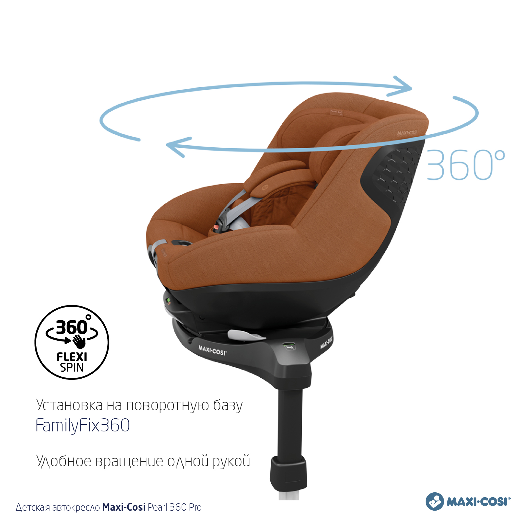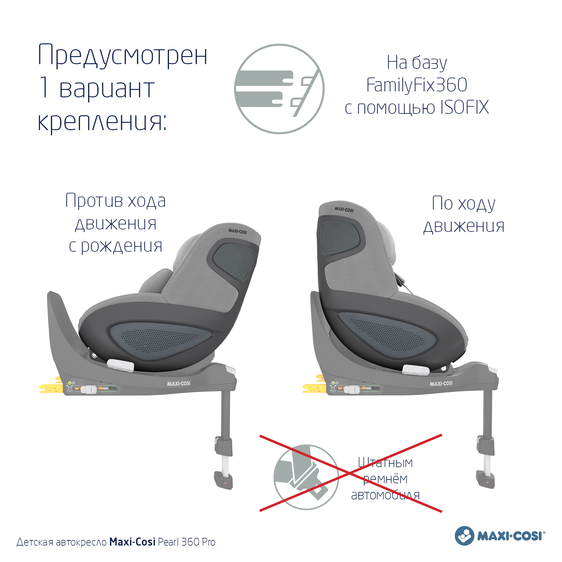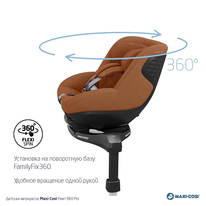 - При использовании с вращающейся выдвижной базой FamilyFix 360 Pro (продается отдельно) с технологией SlideTech™ Pearl 360 Pro становится единственным автокреслом для малышей, которое одновременно вращается и сдвигается к вам.
