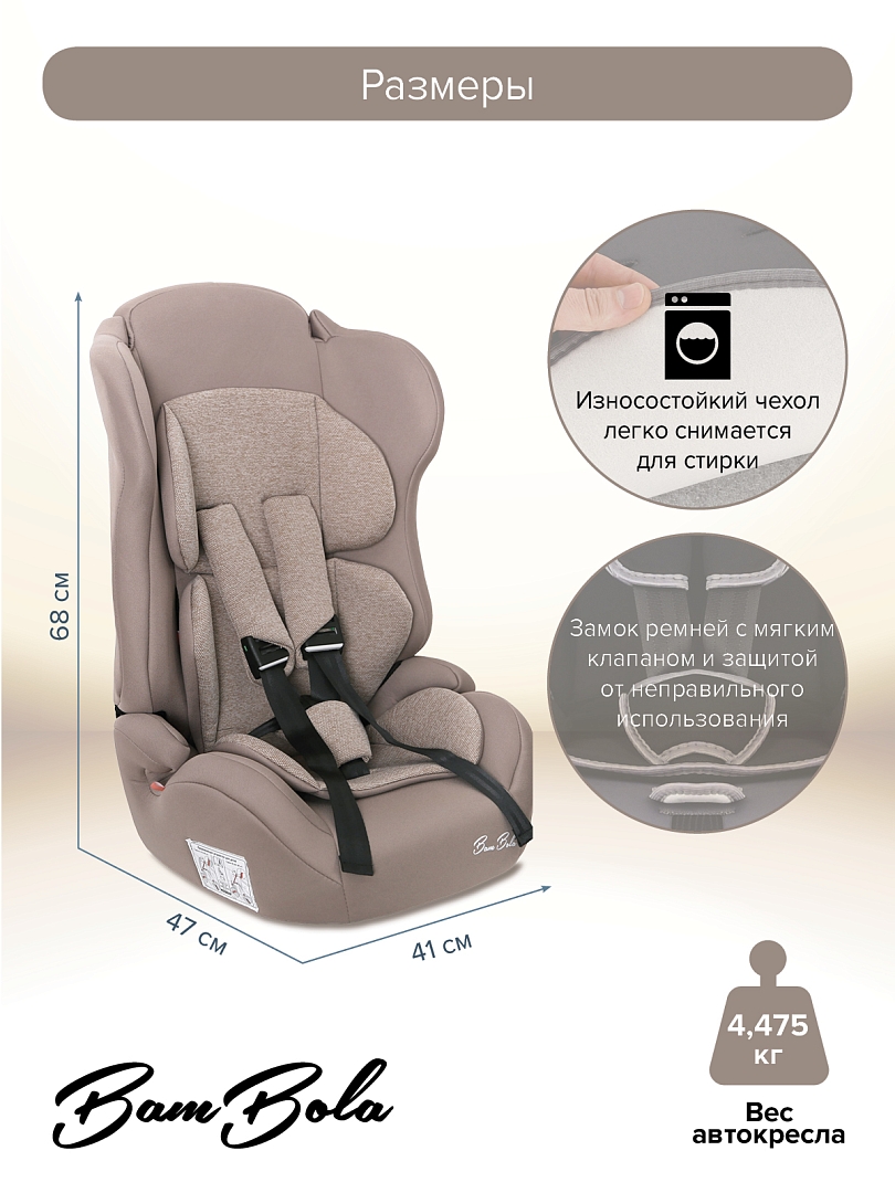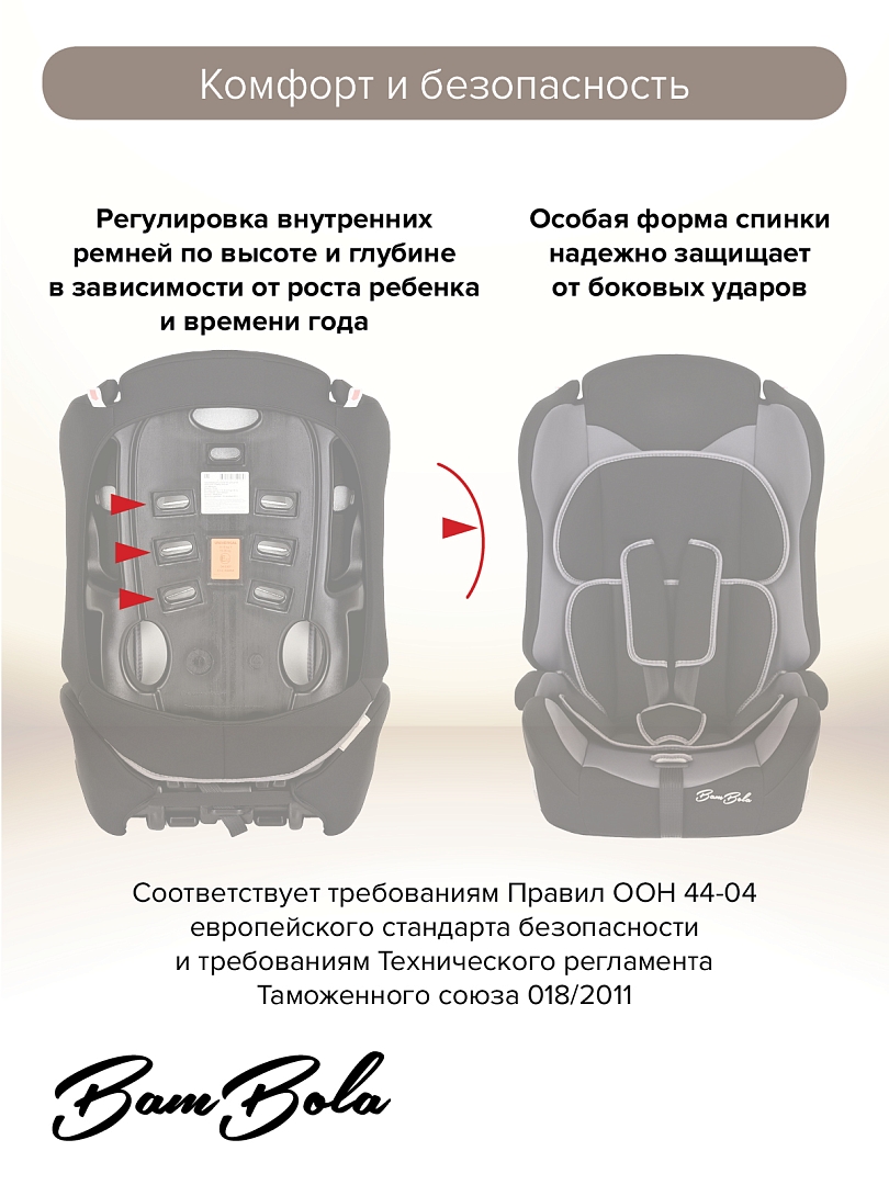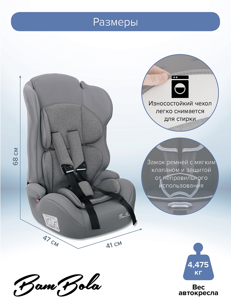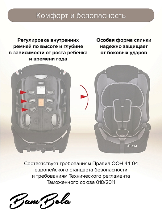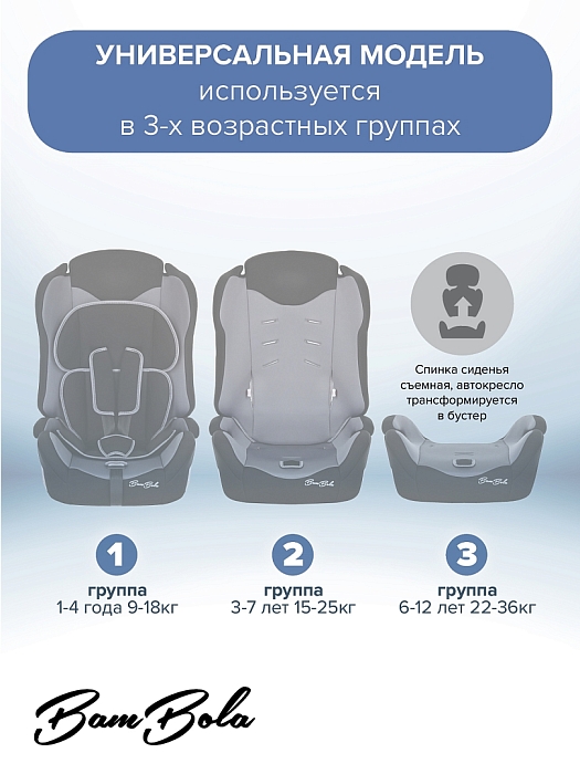 Детское автомобильное кресло Bambola Primo предназначено для детей от 1 года до 12 лет весом от 9 до 36 кг. Отличительным свойством автокресла является его универсальность: по мере роста ребенка, кресло легко трансформируется в бустер. Кресло имеет мягкий съемный подголовник и съемный чехол, изготовленный из гипоаллергенного материала. Для малышей от 1 года до 4 лет автокресло оборудовано внутренними пятиточечными ремнями, которые регулируются по высоте в зависимости от роста ребенка и по глубине специально под зимнюю одежду.