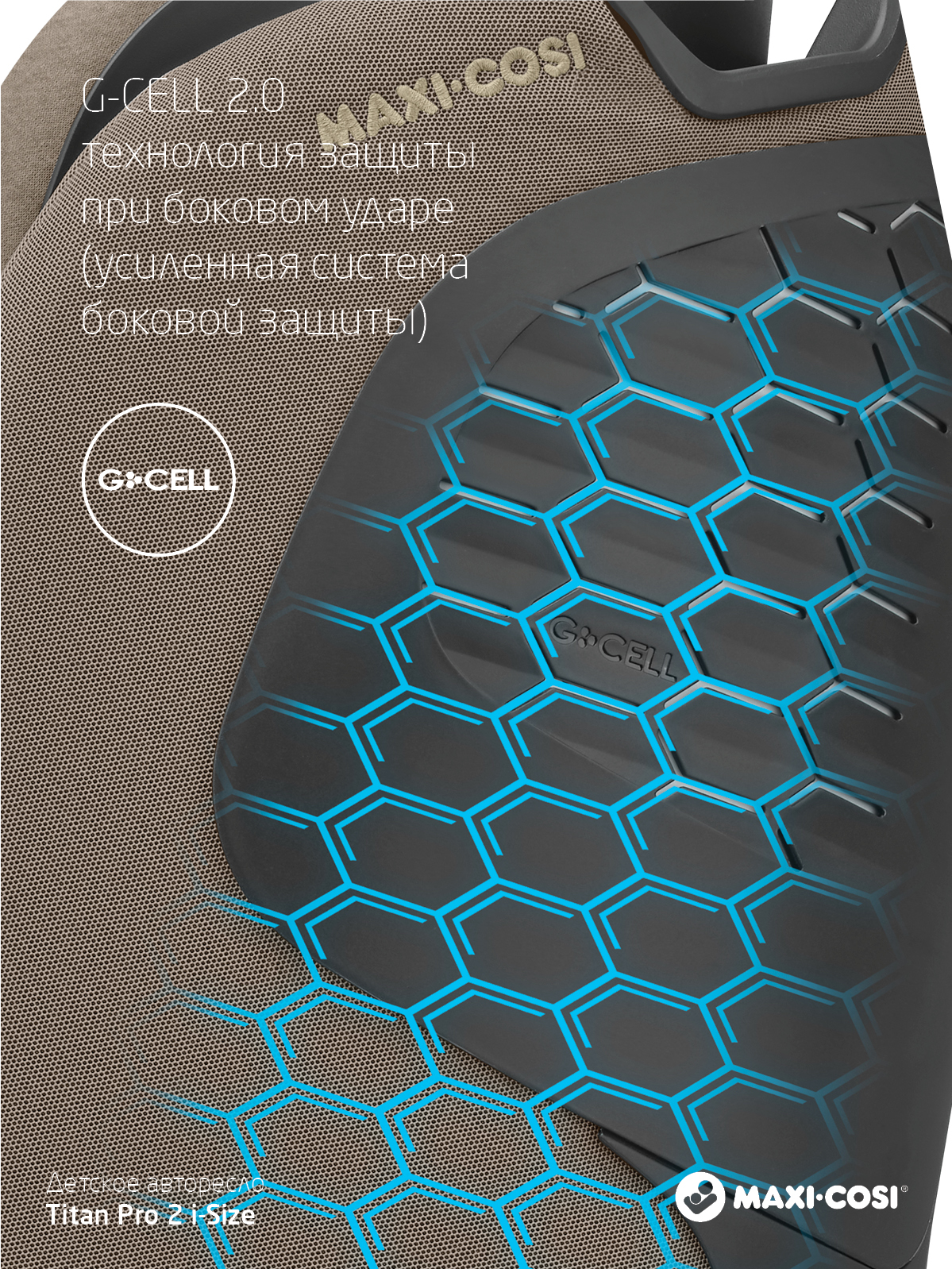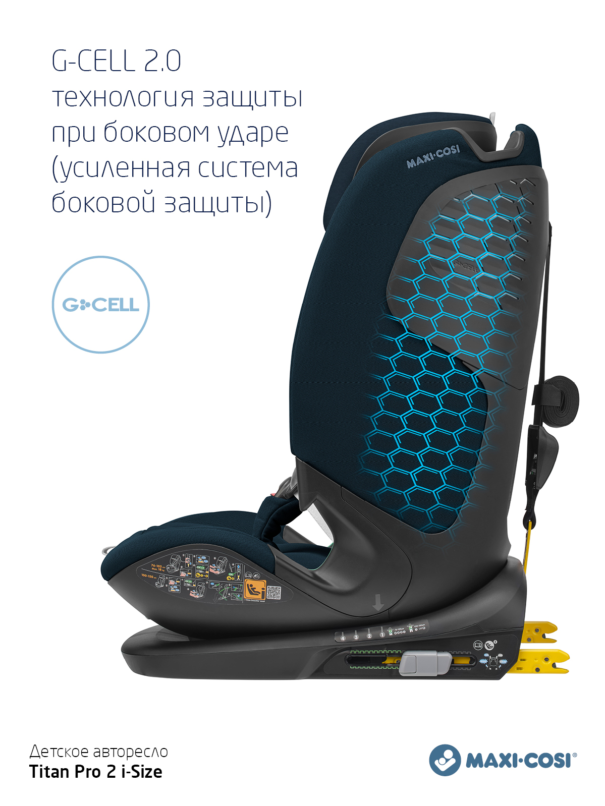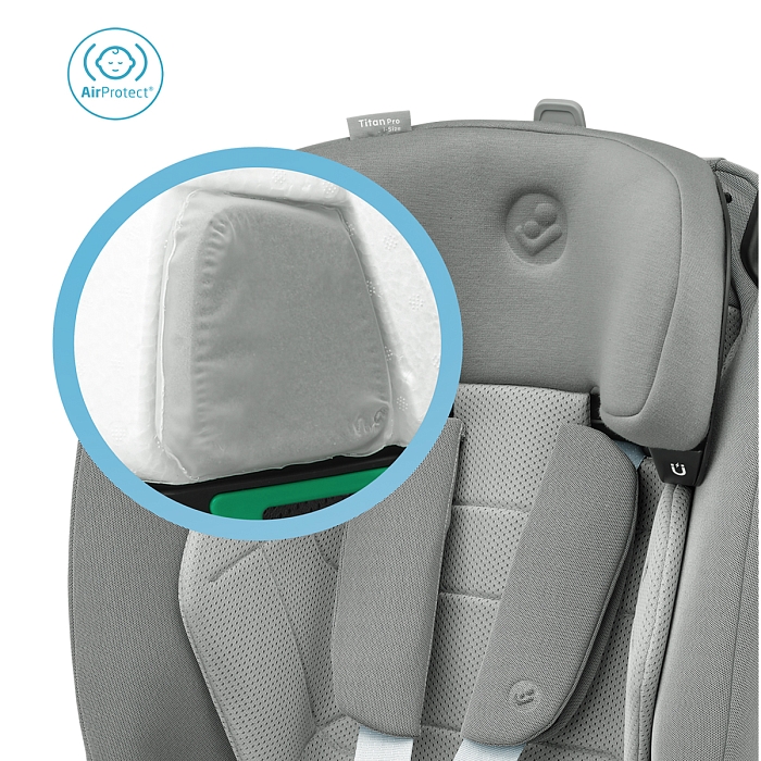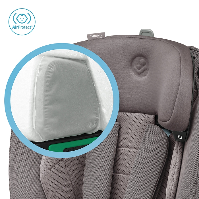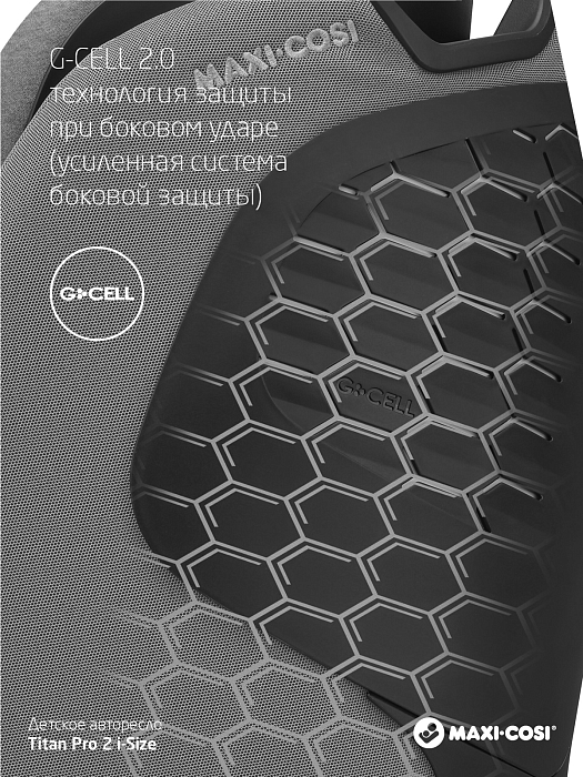 Titan Pro i-Size — лучший защитник. Это автокресло отвечает наивысшему стандарту безопасности i-Size. Поскольку 45 % ударов приходится на боковые стороны, Titan Pro i-Size оснащен запатентованными подушками безопасности AirProtect® в подголовнике, которые снижают риск травм головы до 20 % и повышают комфорт для вашего ребенка. Это универсальное автокресло оснащено защитой от бокового удара благодаря запатентованной технологии G-Cell 2.0; Гибкий, но прочный материал предназначен для распределения силы удара от вашего ребенка, чтобы уменьшить травму.