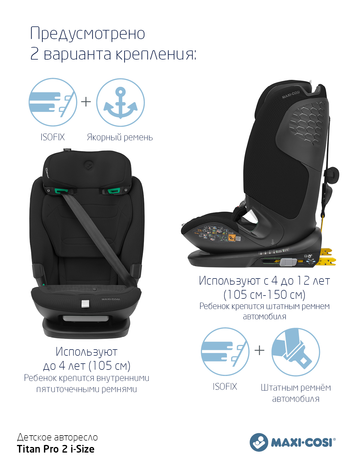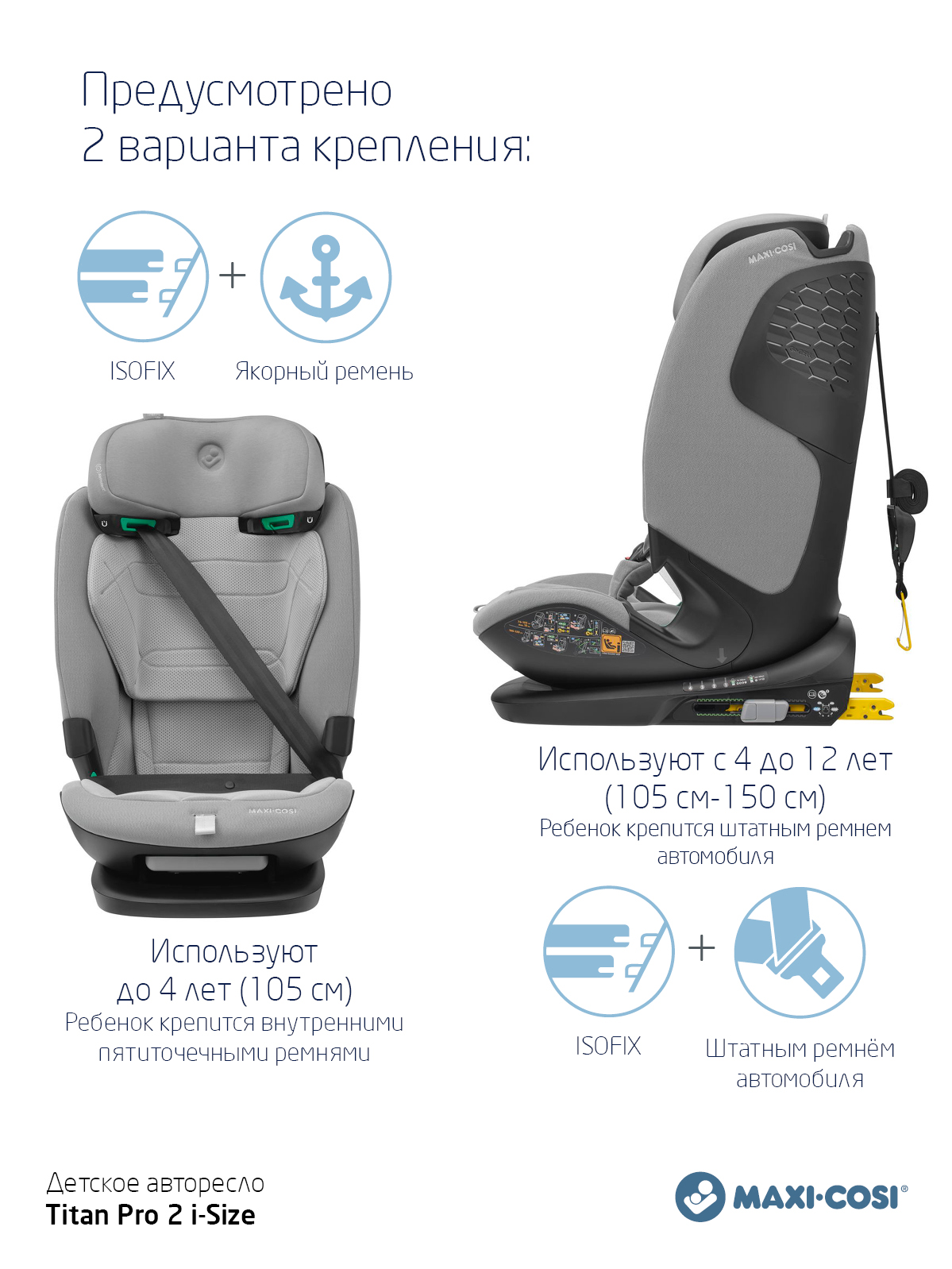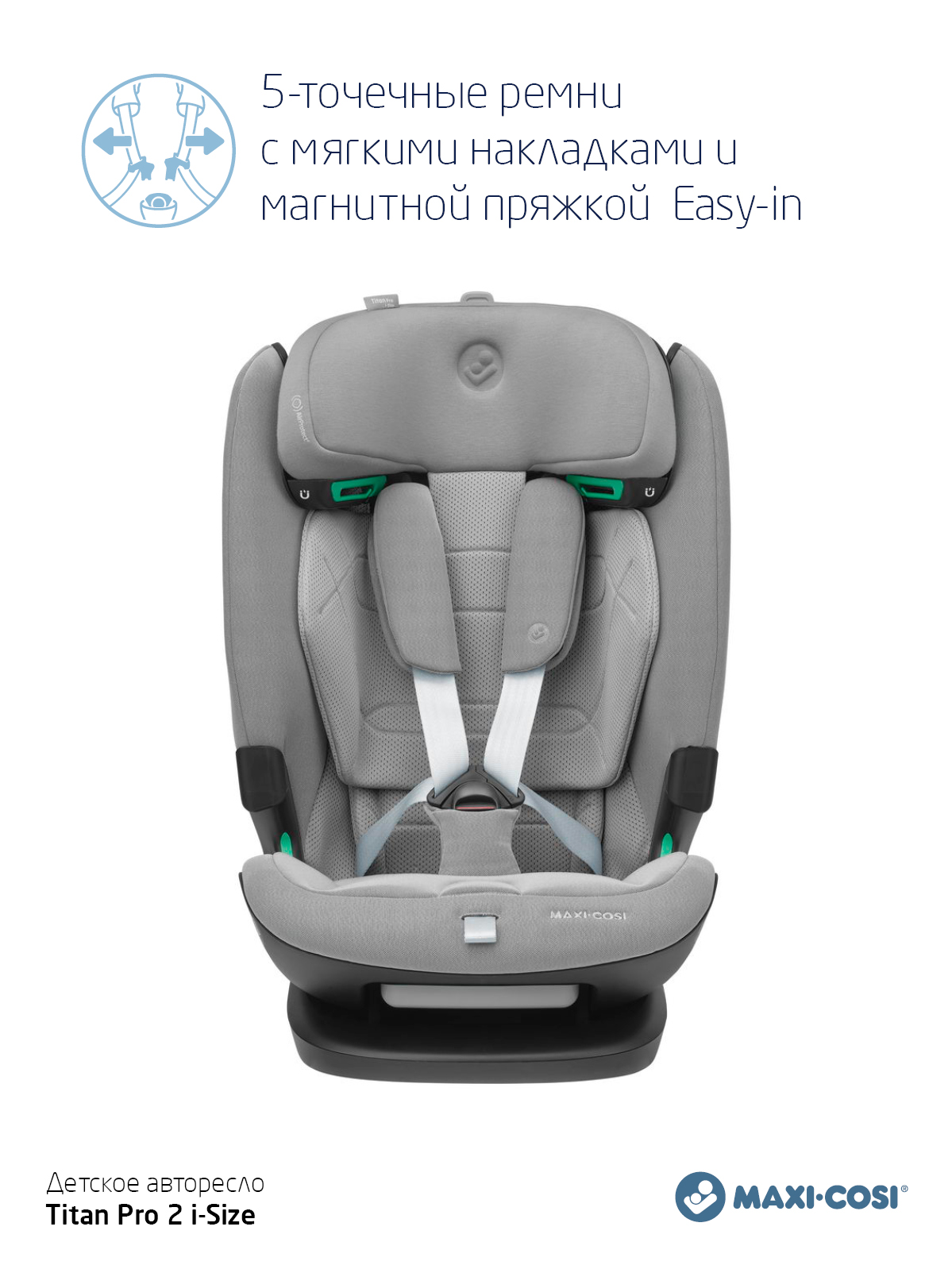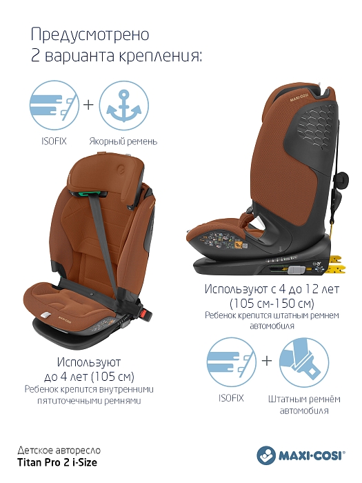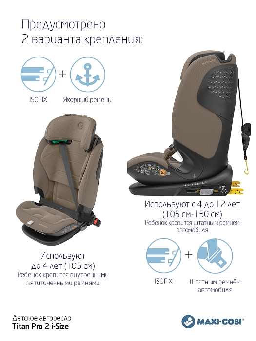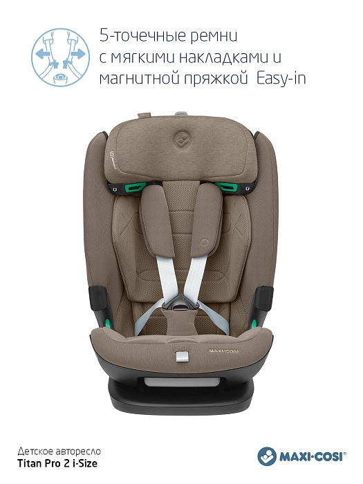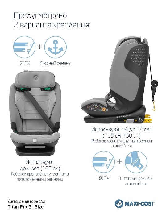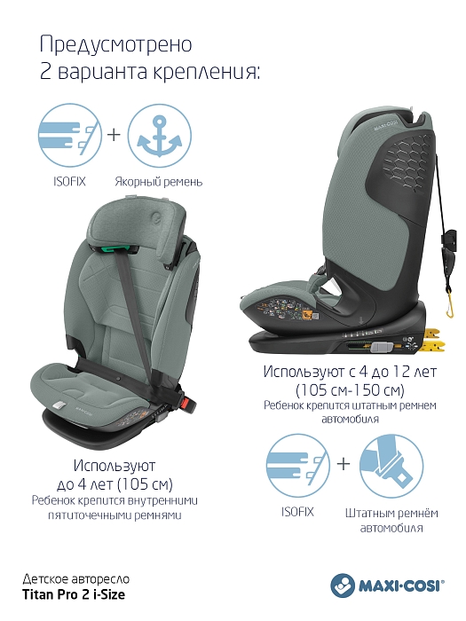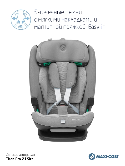 Одно автокресло, которое делает ежедневные семейные путешествия легкими - в течение многих лет - и растет вместе с вашим ребенком. Titan Pro i-Size: это автокресло группы 1-2-3 быстро и легко устанавливается в большинство автомобилей с помощью крепления ISOFIX и якорного ремня. Удобный 5-точечный ремень безопасности с магнитной пряжкой делает посадку и высадку из машины вашего ребенка простой и быстрой. А по мере того, как ваш ребенок растет, подголовник и ремни очень просто регулируются возр. Путешествуйте легко, день за днем. Год за годом.