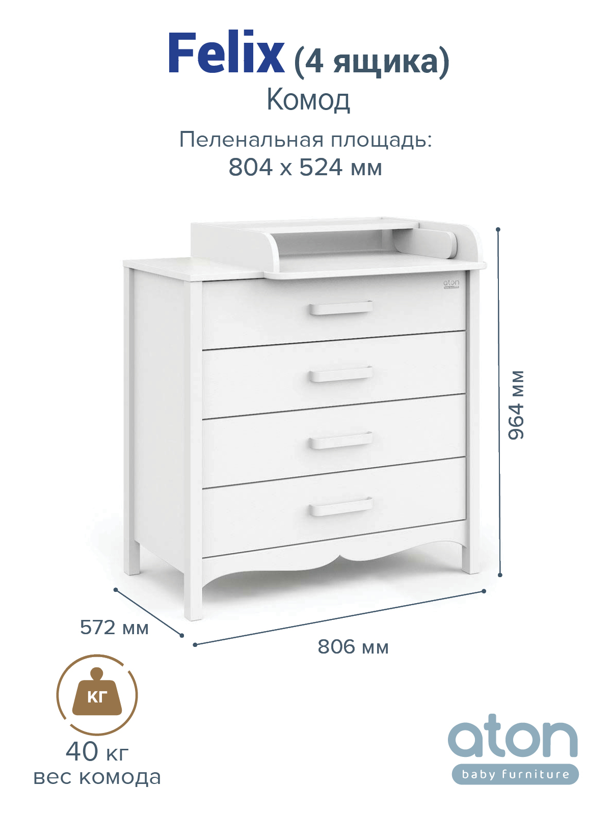 Детский комод Атон Felix Белый-белый