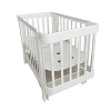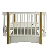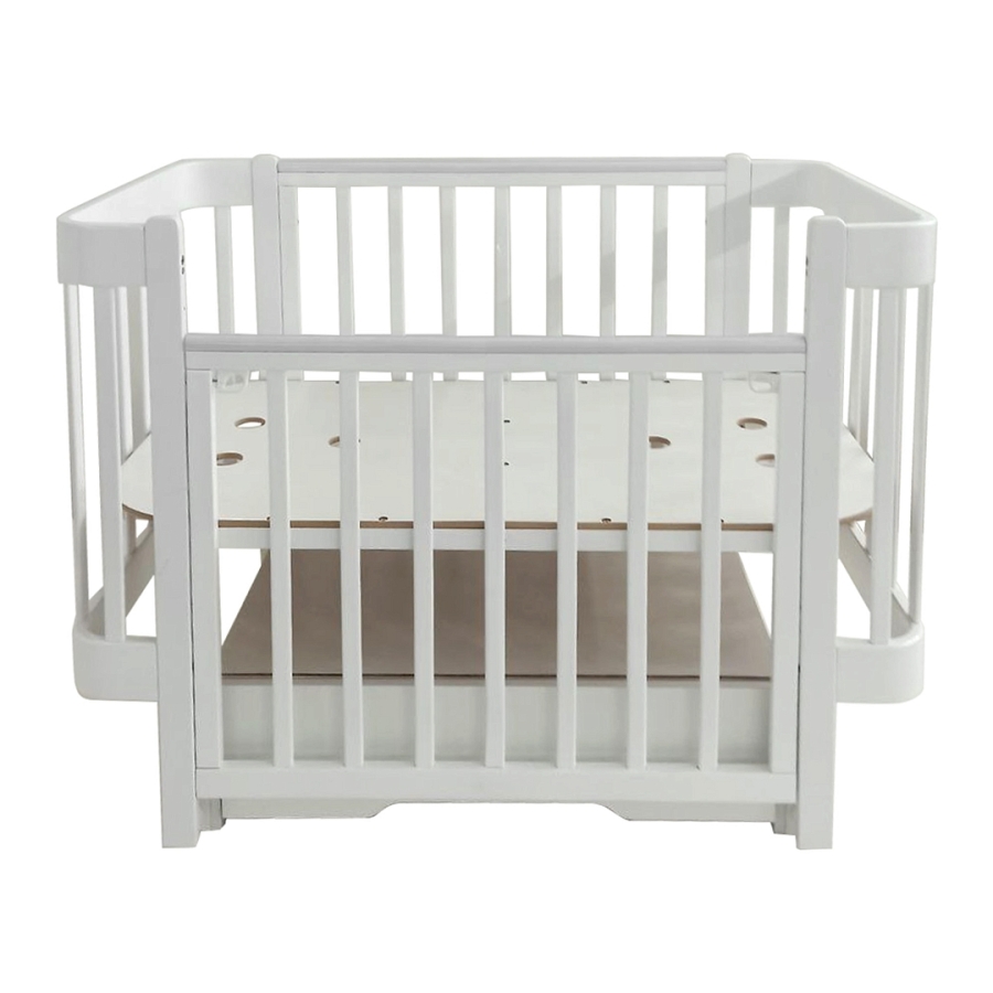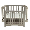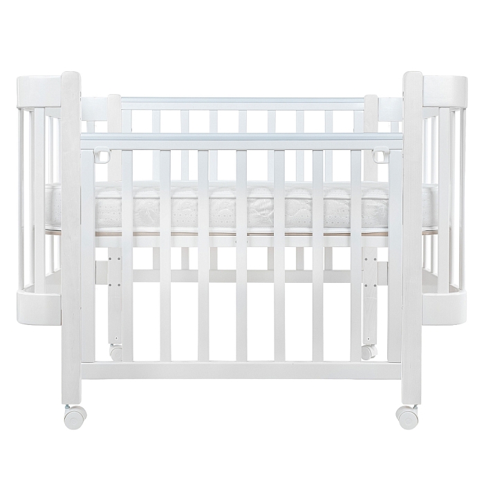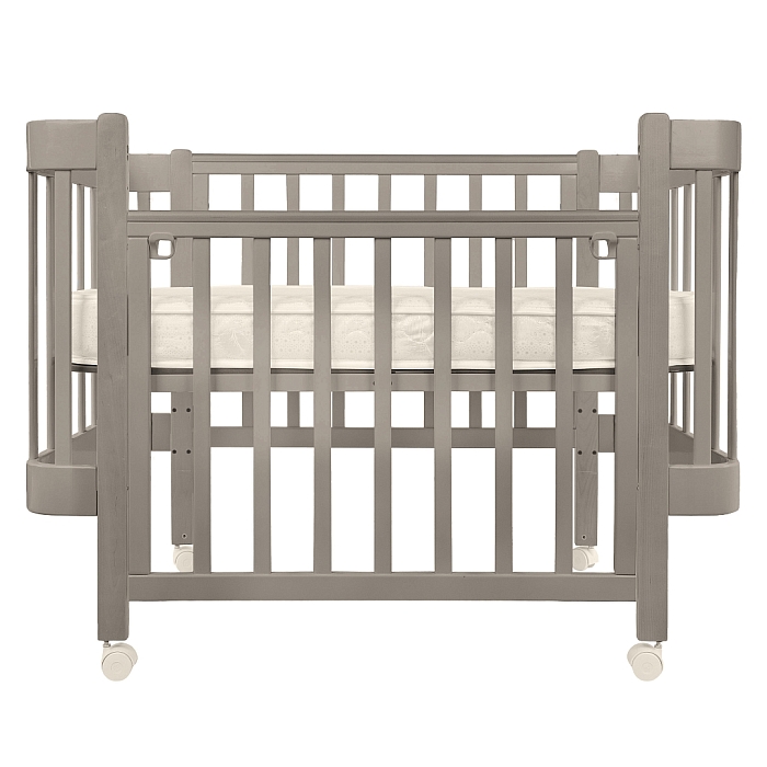 Передняя авто-стенка с возможностью полного снятия за считаные секунды, для удобного доступа к младенцу. Благодаря съемной авто-стенке, можно приставлять к родительской кровати. Фастексы с ремешками, можно кроватку сцепить с родительской кроватью
