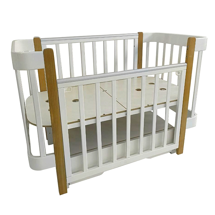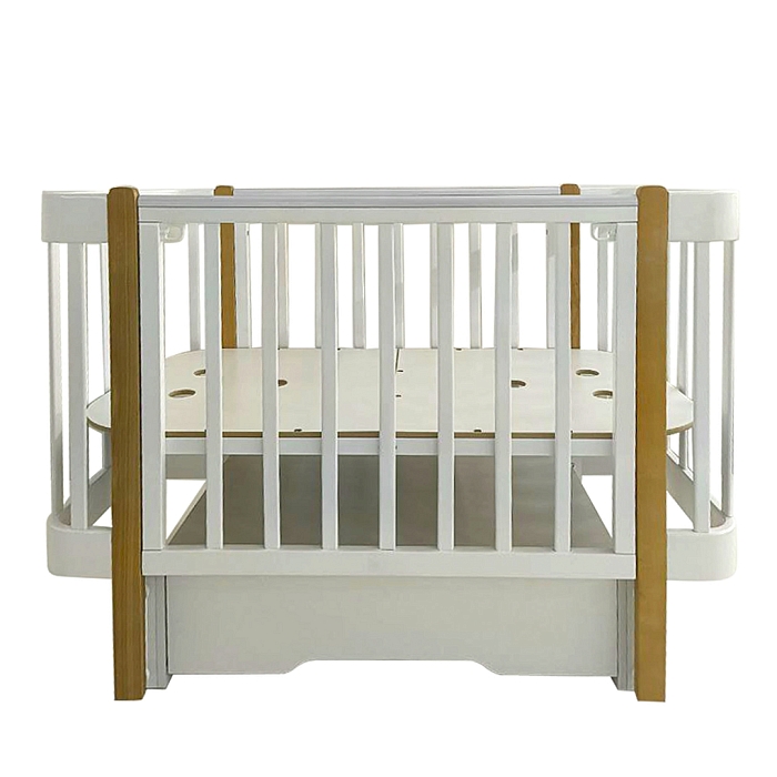 Бортики кровати имеют накладки (антигрызунки), которые будут актуальны при прорезывании зубов и не травмировать десна.