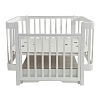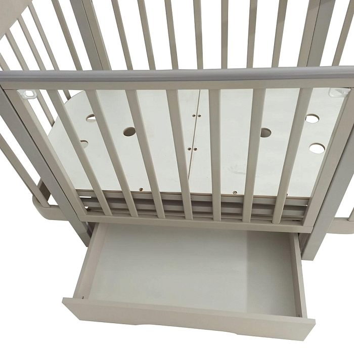 Ложе кроватки имеет 4 положения по высоте: от пола (25 см±1 см; 34 см±1-2 см; 40,5 см±1-2 см; 47 см±1-2 см).