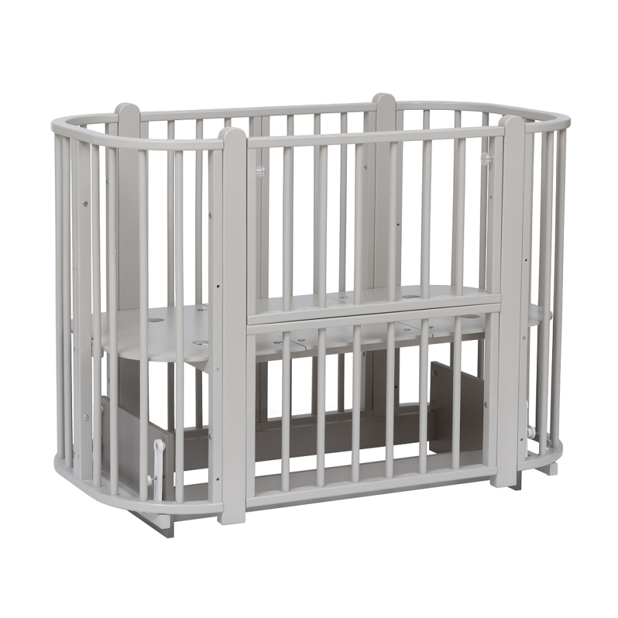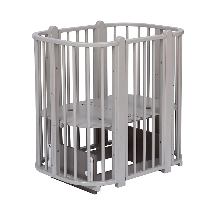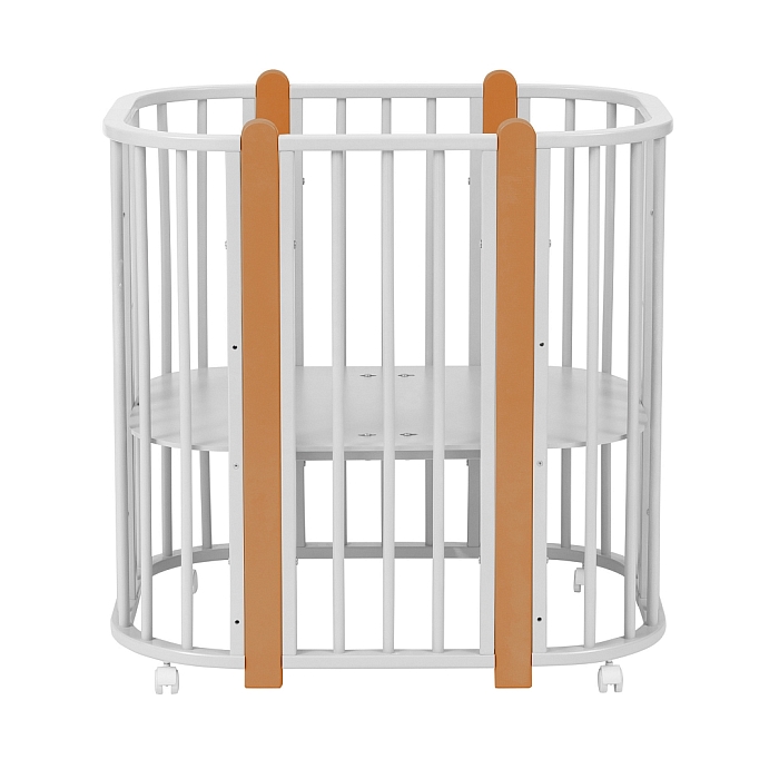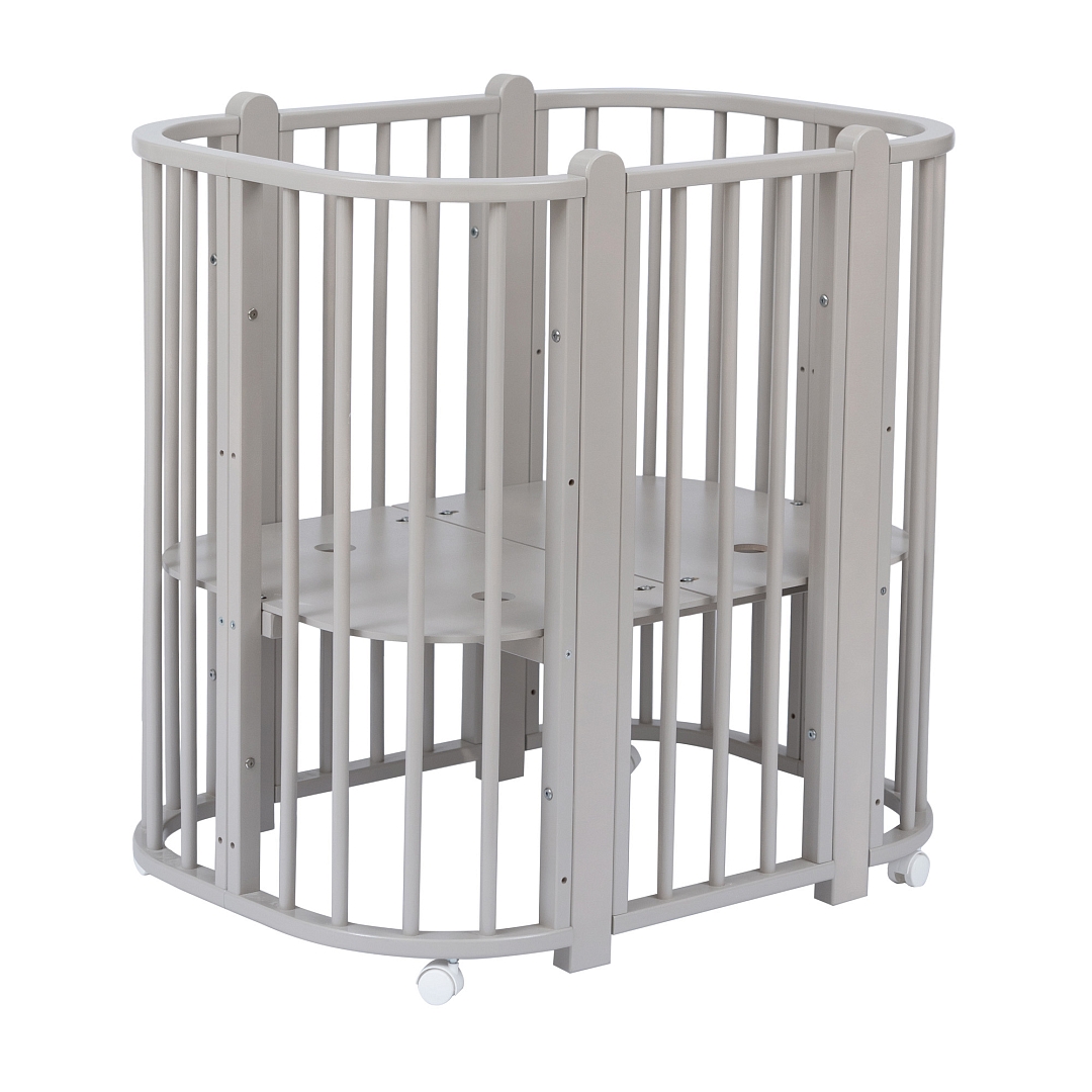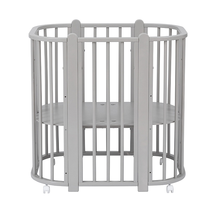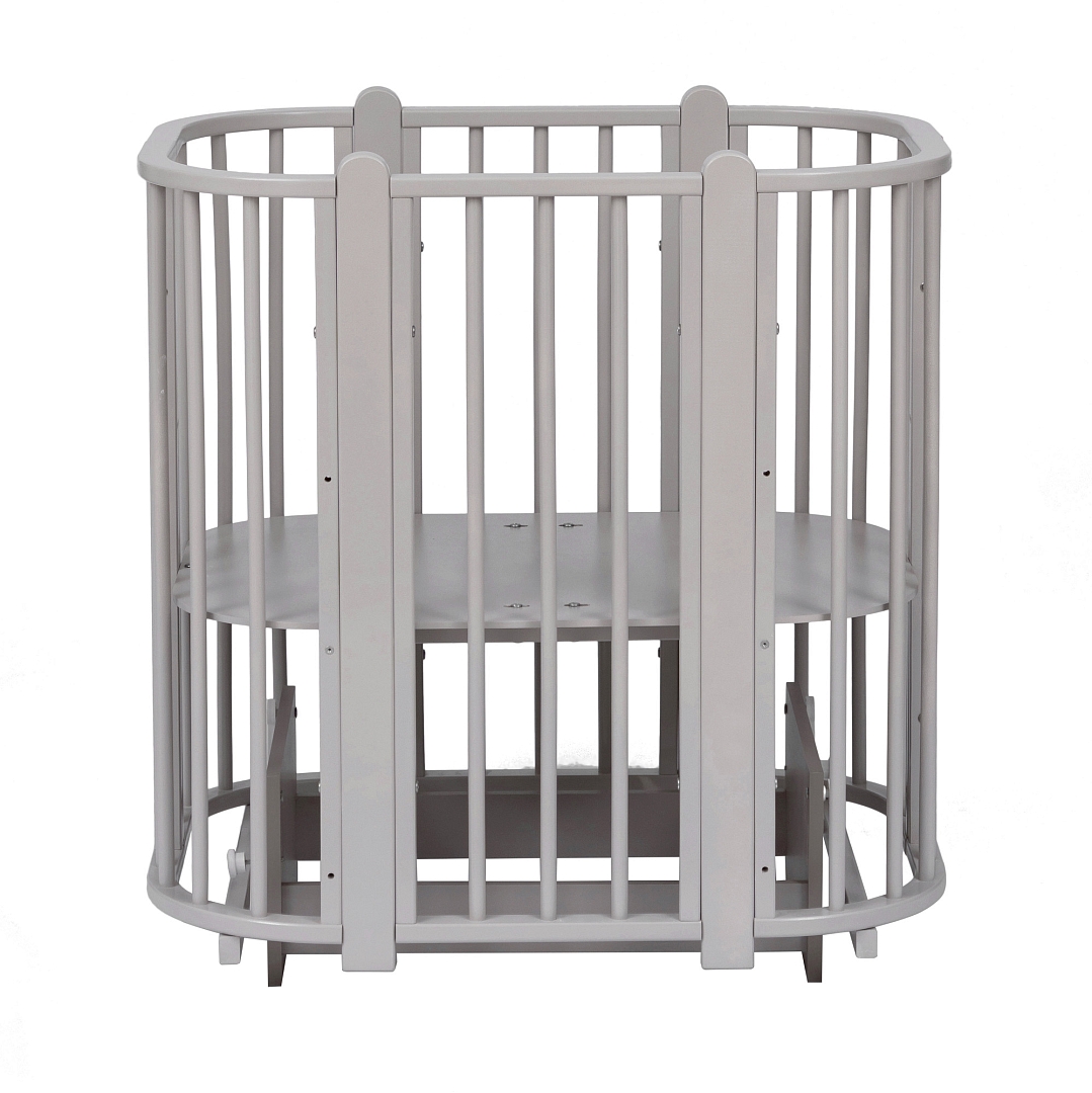 Современная кроватка необычной овальной формы для ребенка с рождения до 3 лет. Уже доказано, что ребенок в первые месяцы после рождения лучше спит в небольшом ограниченном пространстве, там более уютно и спокойно. В этот период рекомендуем использовать колыбель (круглая). В дальнейшем, кроватка трансформируется в полноценную овальную кроватку с закругленными углами. У кроватки простой, но очень красивый внешний вид. Она полностью безопасна для ребенка и не имеет острых углов. В комплекте с кроваткой идут колёса для удобного перемещения по комнате. Кроватка проходит в стандартный дверной проём.