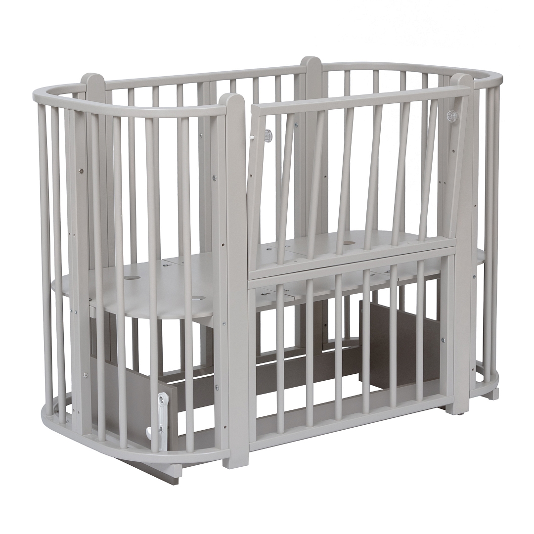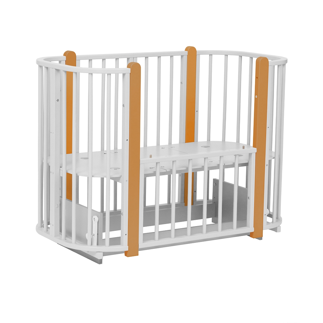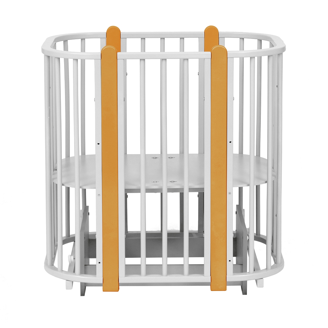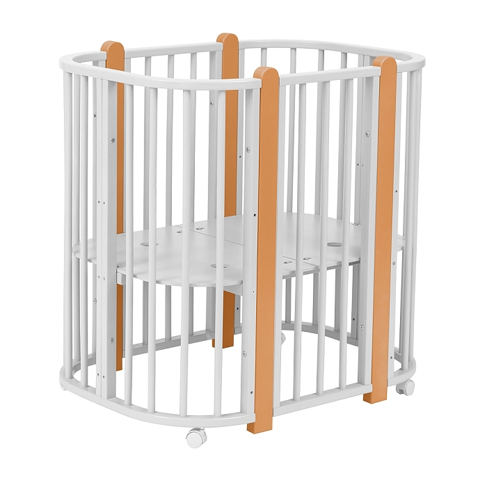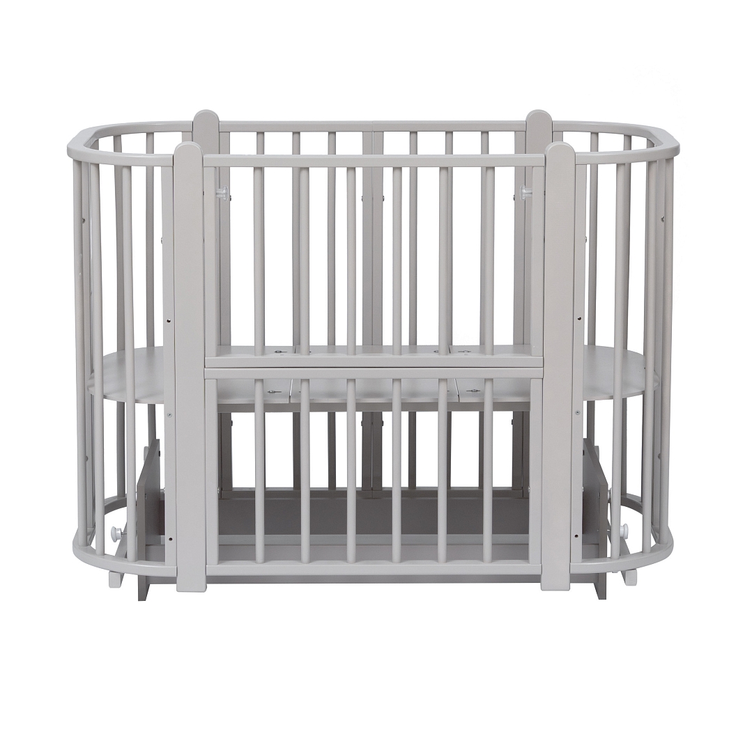Современная кроватка необычной овальной формы для ребенка с рождения до 3 лет. Уже доказано, что ребенок в первые месяцы после рождения лучше спит в небольшом ограниченном пространстве, там более уютно и спокойно. В этот период рекомендуем использовать колыбель (круглая). В дальнейшем, кроватка трансформируется в полноценную овальную кроватку с закругленными углами. У кроватки простой, но очень красивый внешний вид. Она полностью безопасна для ребенка и не имеет острых углов. В комплекте с кроваткой идут колёса для удобного перемещения по комнате. Кроватка проходит в стандартный дверной проём.