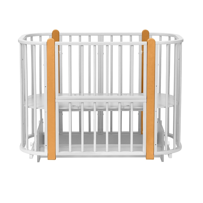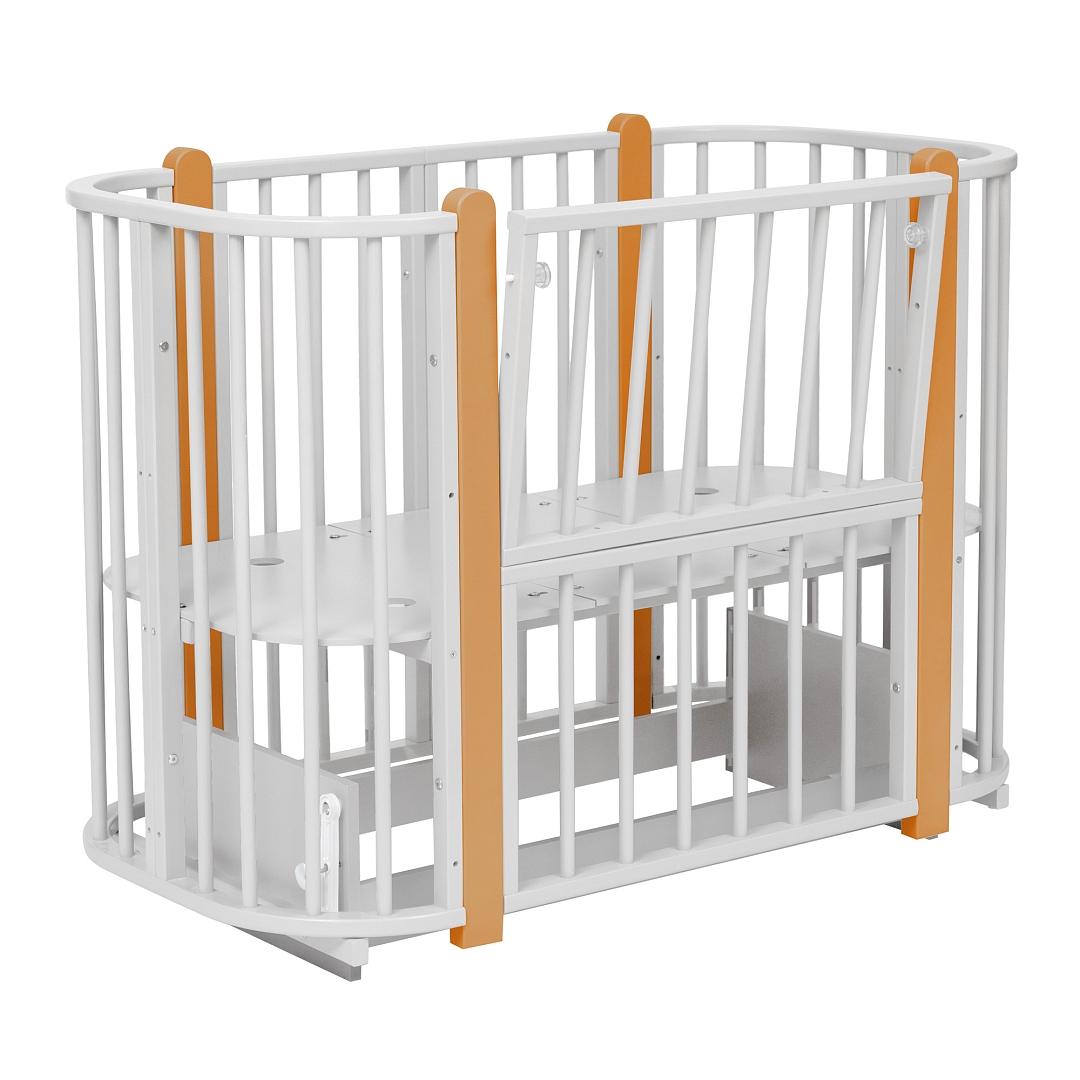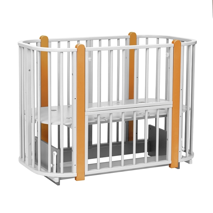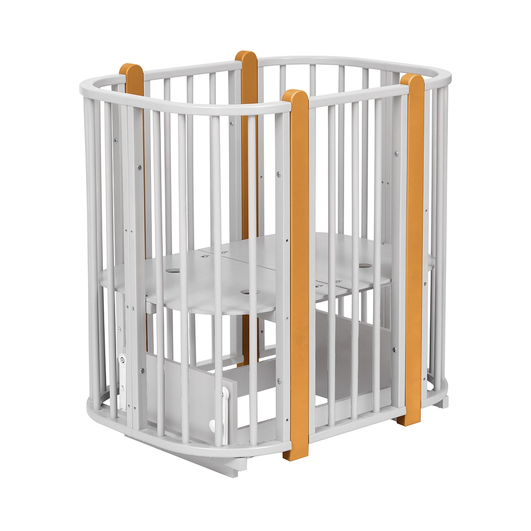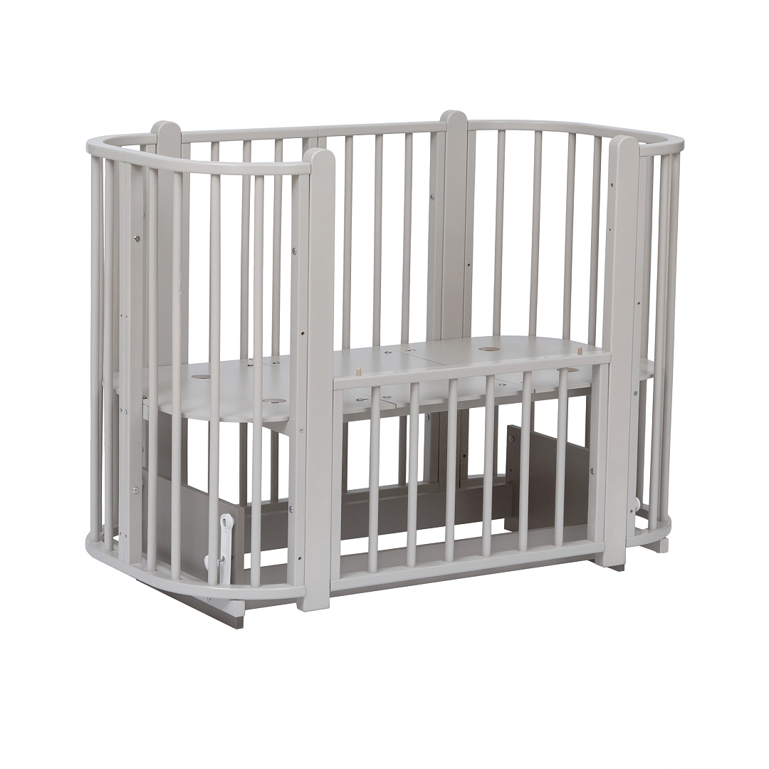 Современная кроватка необычной овальной формы для ребенка с рождения до 3 лет. Уже доказано, что ребенок в первые месяцы после рождения лучше спит в небольшом ограниченном пространстве, там более уютно и спокойно. В этот период рекомендуем использовать колыбель (круглая). В дальнейшем, кроватка трансформируется в полноценную овальную кроватку с закругленными углами. У кроватки простой, но очень красивый внешний вид. Она полностью безопасна для ребенка и не имеет острых углов. В комплекте с кроваткой идут колёса для удобного перемещения по комнате. Кроватка проходит в стандартный дверной проём.