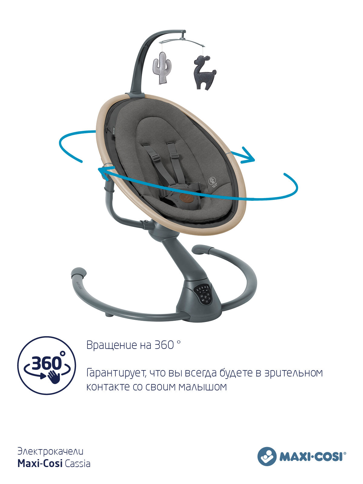 Вращение на 360 ° гарантирует, что вы всегда будете в зрительном контакте со своим малышом.