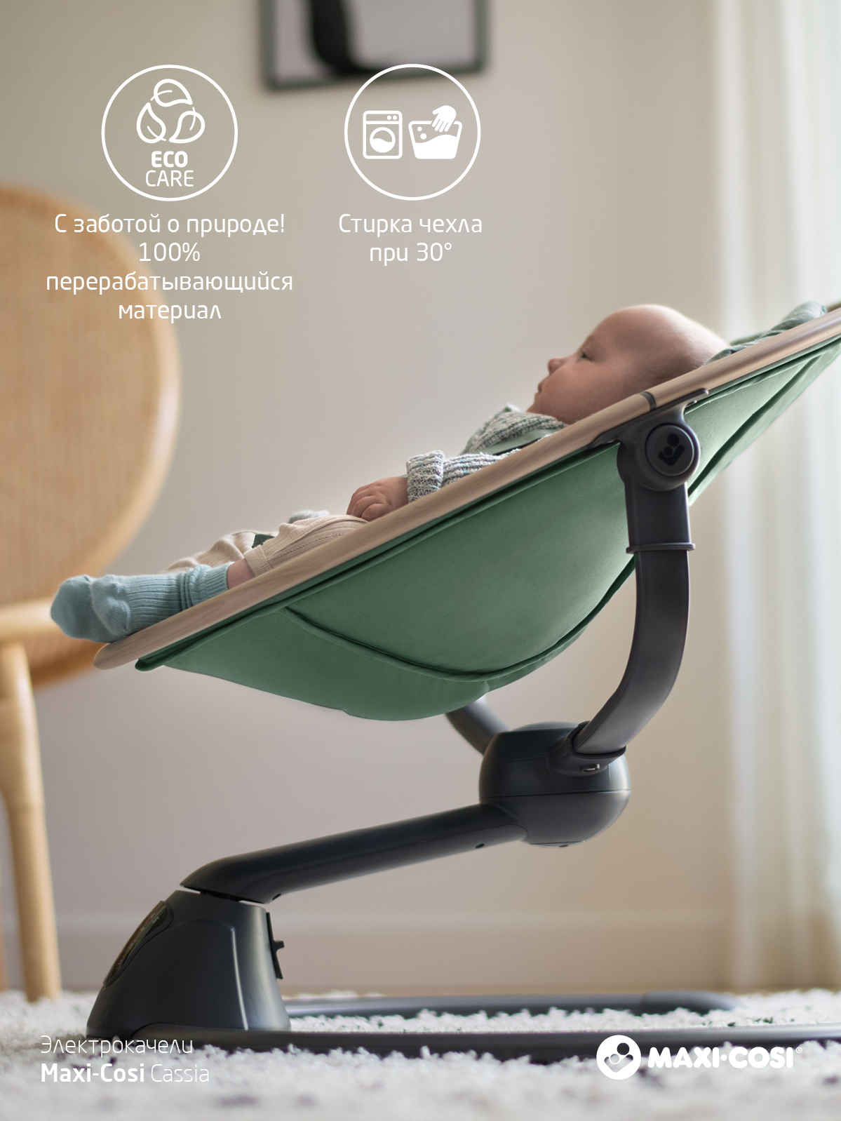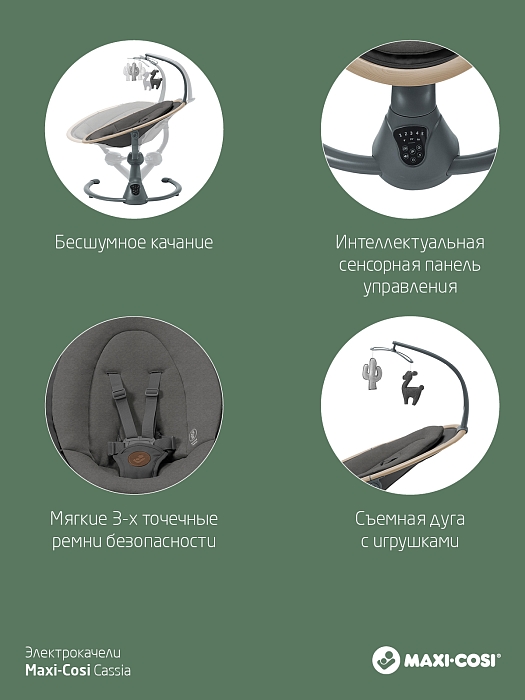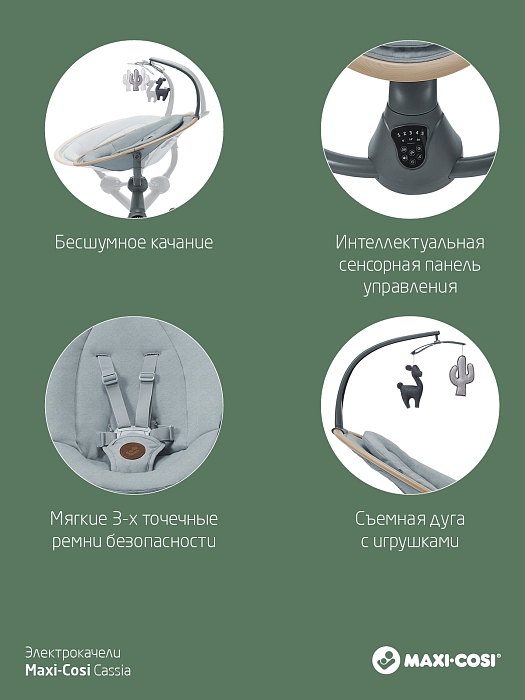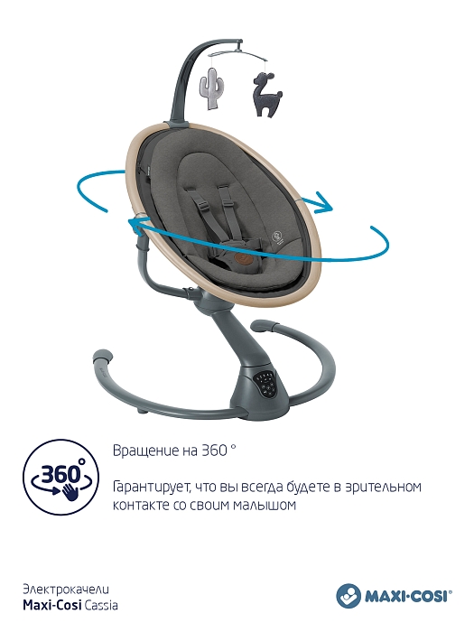 Электрокачель Cassia распознает, когда ваш малыш начинает капризничать, и инстинктивно начнет покачивать, чтобы успокоить его.