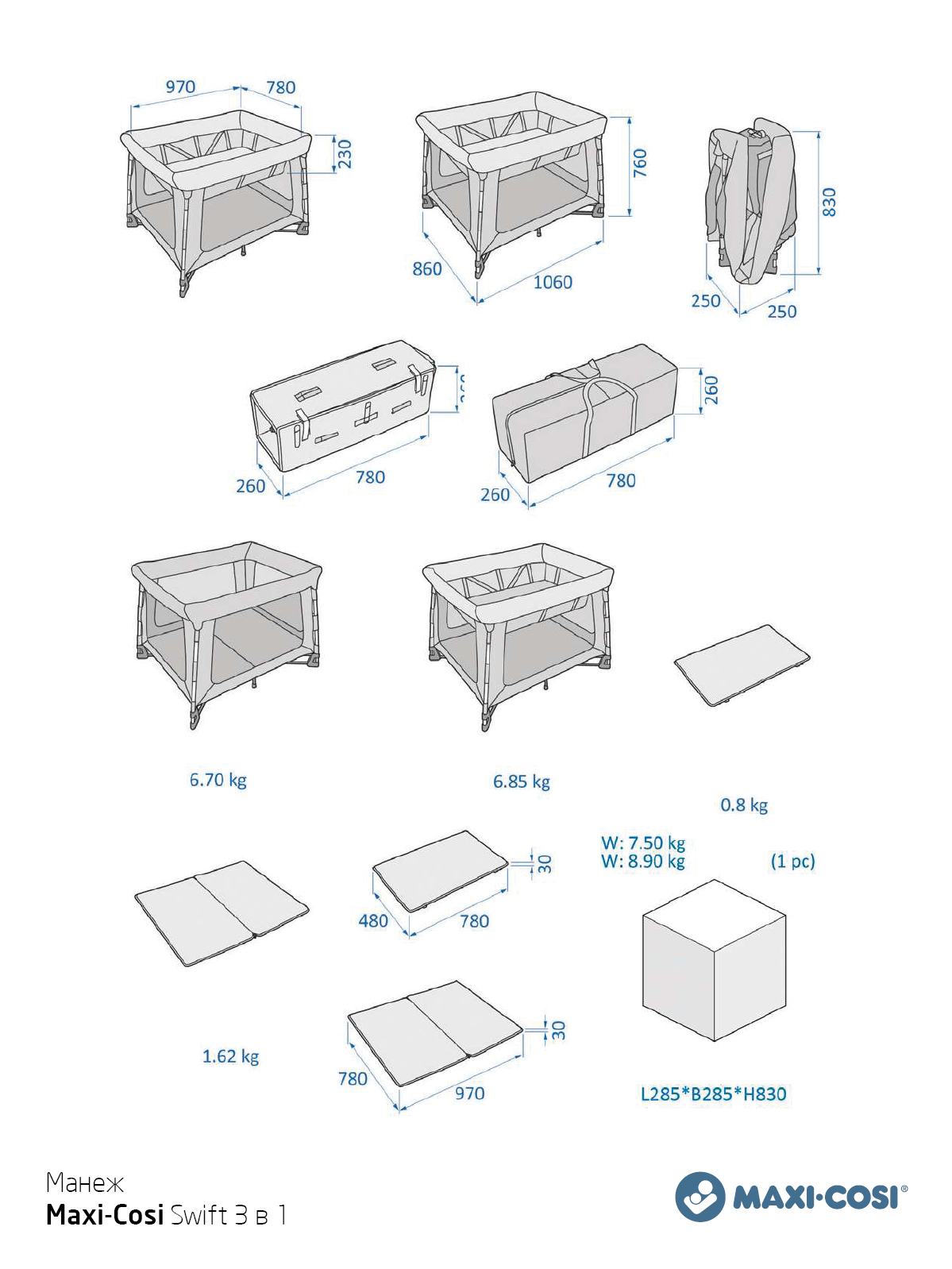 Maxi-Cosi Swift – универсальный стильный манеж 3 в 1, которую можно использовать как люльку для новорожденного, кроватку и прочный манеж для игр. Складывается за одну секунду.