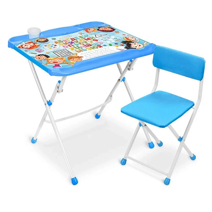 НИКА Набор мебели Азбука от 2 до 7 лет- Столик+ стульчик складные, идеально подойдет малышам для занятий творчеством, с набором легко выучить буквы и цифры, они нарисованы, прям на столешнице. Столешница гладкая, даже если ребенок нарисует на ней маркером, то детский рисунок легко смыть влажной салфеткой. На столе есть закрывающийся пенал для хранения карандашей, его можно использовать как подставку для книг
