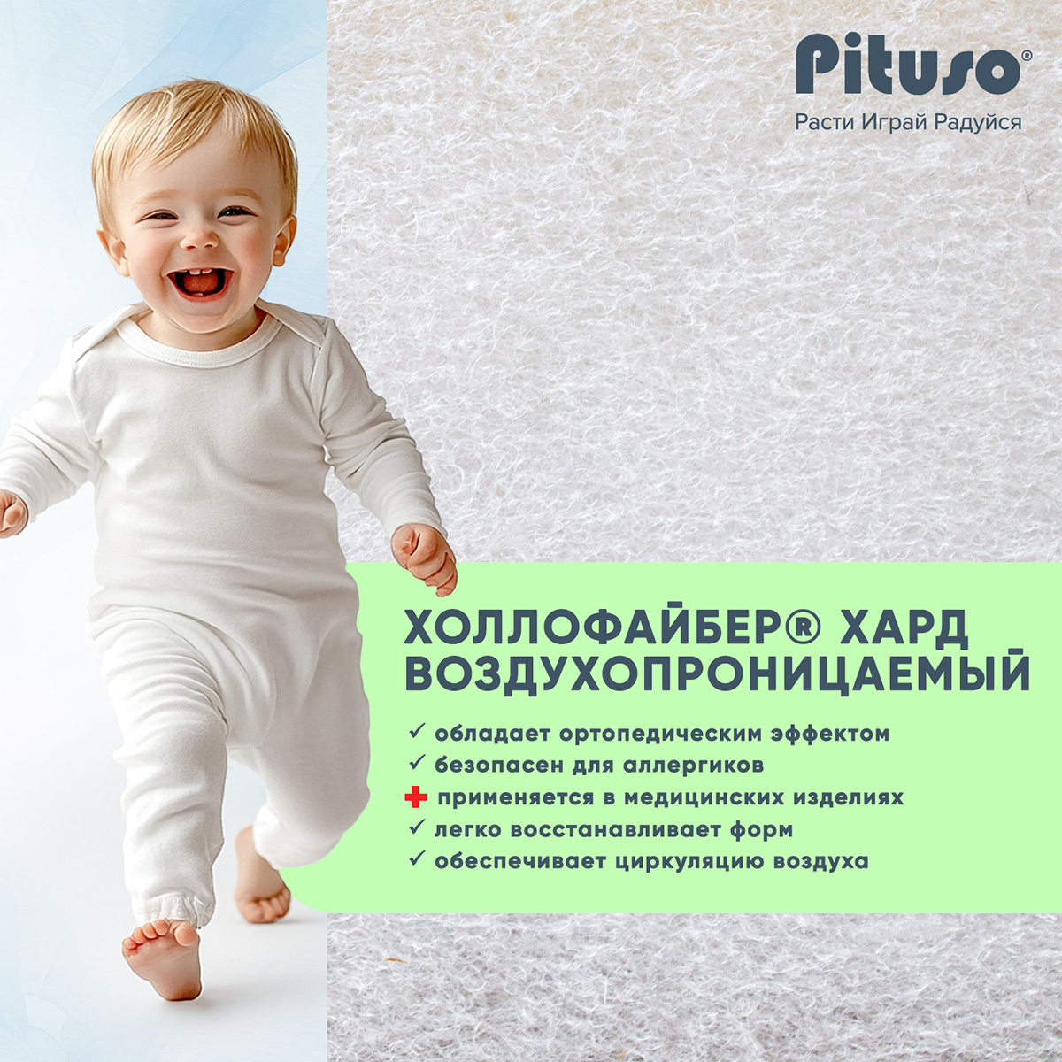 Инновационный высокоплотный материал холлофайбер состоит из множества гипоаллергенных полиэфирных волокон спиральной формы, расположенных вертикально. Холлофайбер обладает высокой упругостью и сопротивлением нагрузкам, благодаря чему обеспечивает ортопедический эффект поверхности для сна. Он не накапливает статику, не боится влаги и обладает высокой воздухопроницаемостью, поддерживая здоровый микроклимат в кроватке.