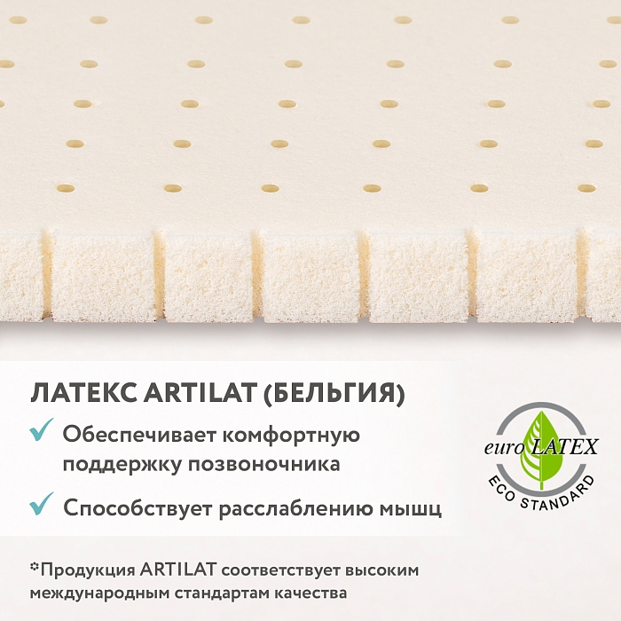 Латекс обеспечивает особый анатомический эффект — распределяет нагрузку по поверхности, позволяя мышцам максимально расслабиться.