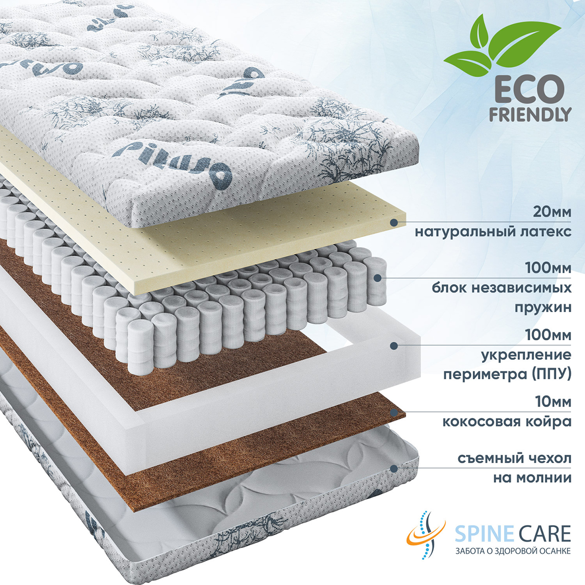 С одной стороны матраса расположен слой натурального латекса: он предназначен для анатомической поддержки полноценного расслабления мышц после активности. Натуральный латекс считается самым комфортным наполнителем из ныне существующих.