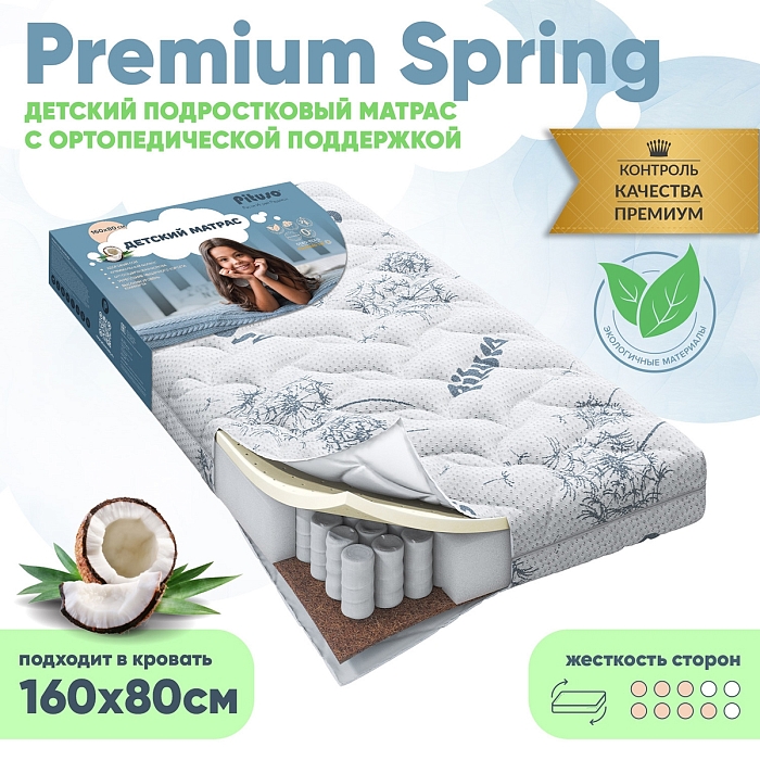 Матрас подростковый пружинный Pituso Premium Spring 160х80х13 стеганый трикотаж