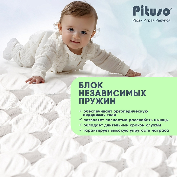 В основе матраса лежит блок независимых пружин с усилением периметра евроблокамипенополиуретана. Это ортопедический наполнитель, предназначенный для активных детей. Благодаря многоточечной поддержке позвоночника и бесшумности пружин, обеспечивается полноценный отдых.