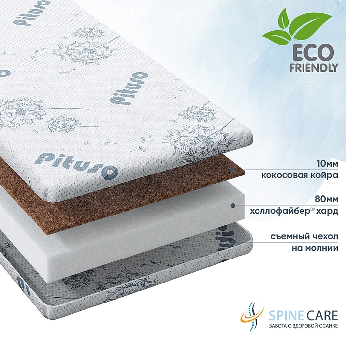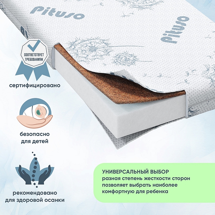 PITUSO Матрас детский беспружинный Baby Balance (кокос+холлофайбер) 120*60*7 трикотаж