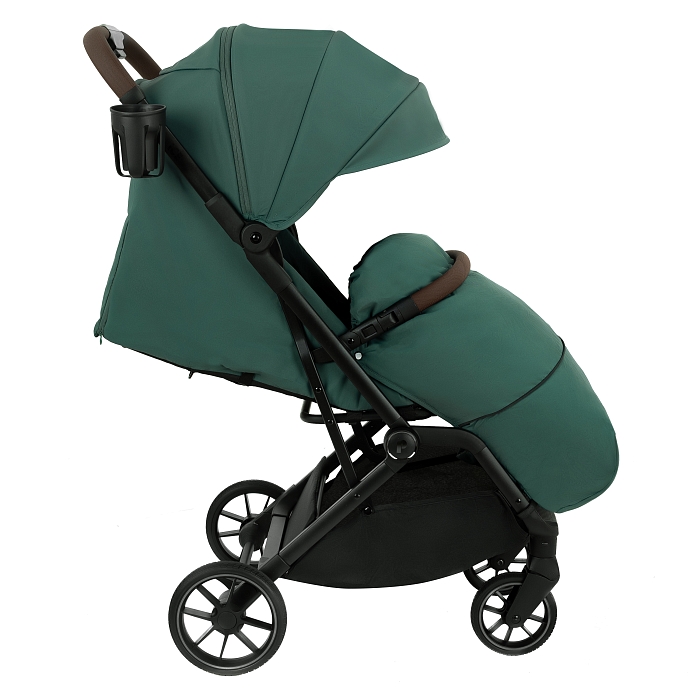 Прочная ручка из эко-кожи приятна на ощупь. Удобная конструкция помогает легко складывать коляску одним нажатием кнопки.