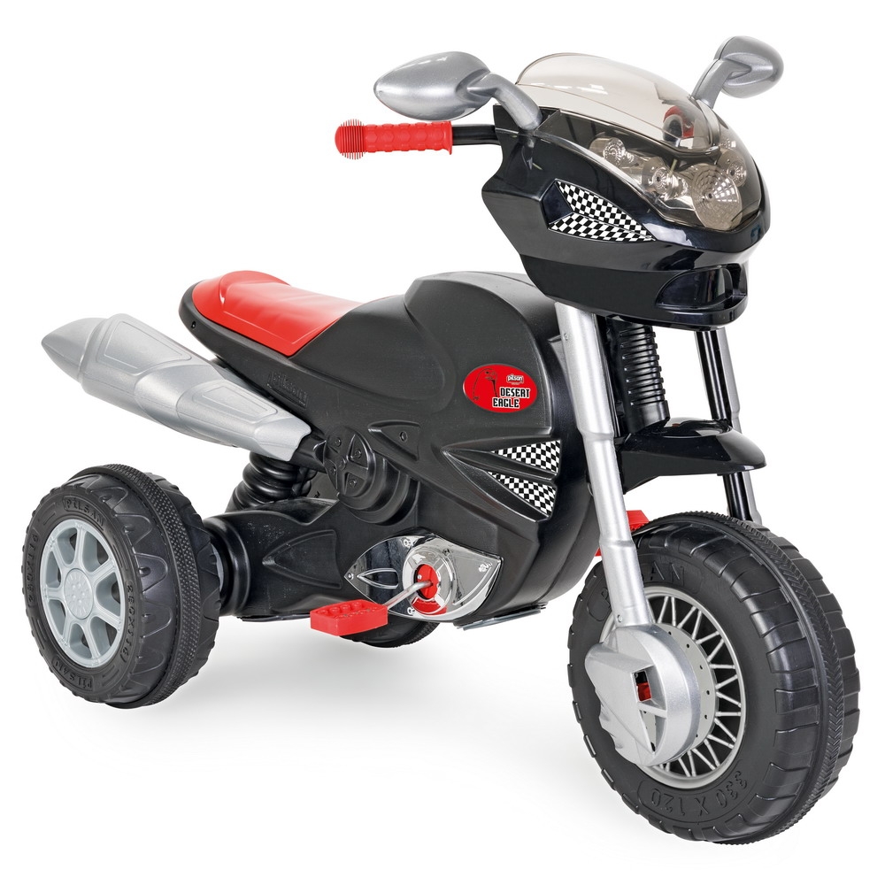 Детский педальный мотоцикл Desert Eagle может похвастаться плавными линиями и реалистичным дизайном настоящего спортивного транспортного средства.