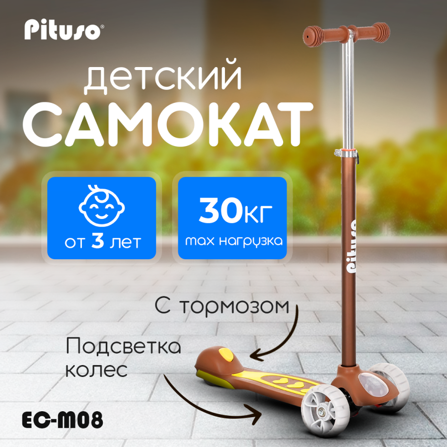 Трехколесный самокат Pituso EC-M08 Brown/Коричневый