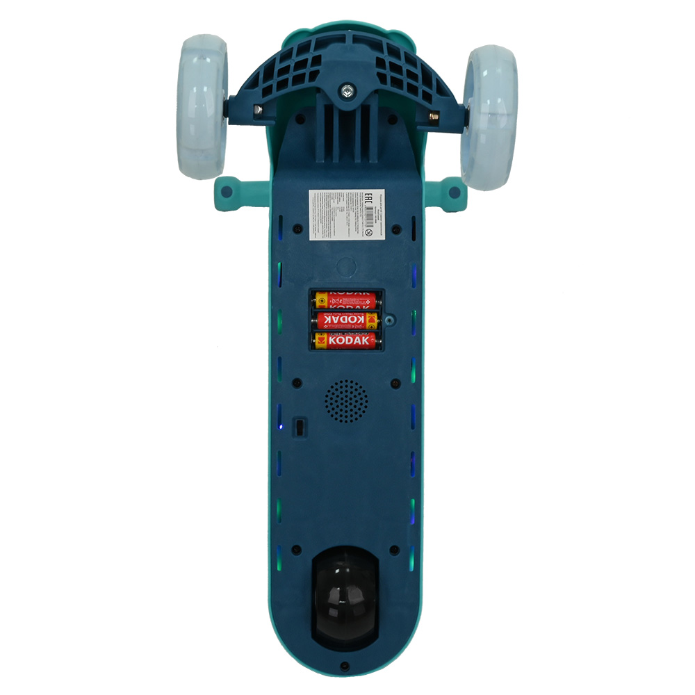 Передние колеса выполнены из материала PU, 120мм х 40мм, светятся