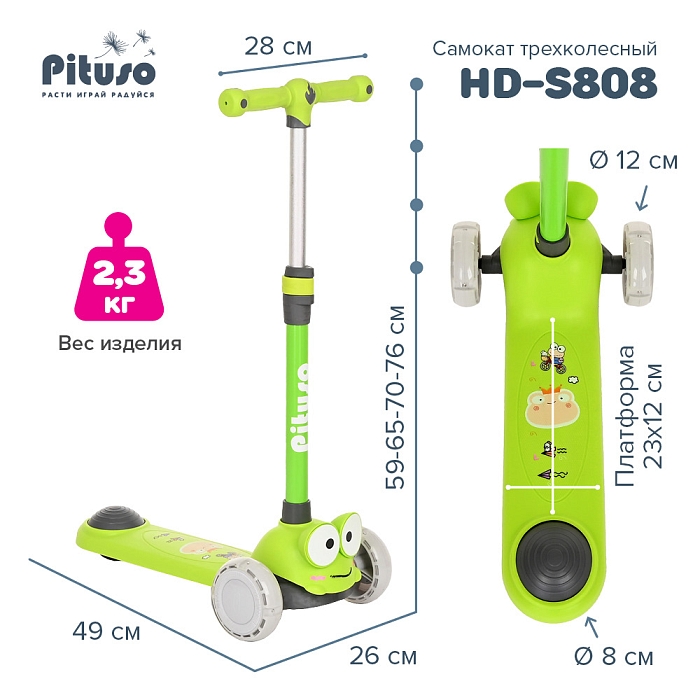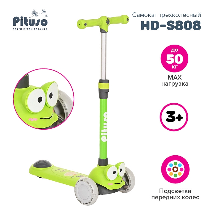 Трехколесный самокат Pituso HD-S808 Green/Зеленый