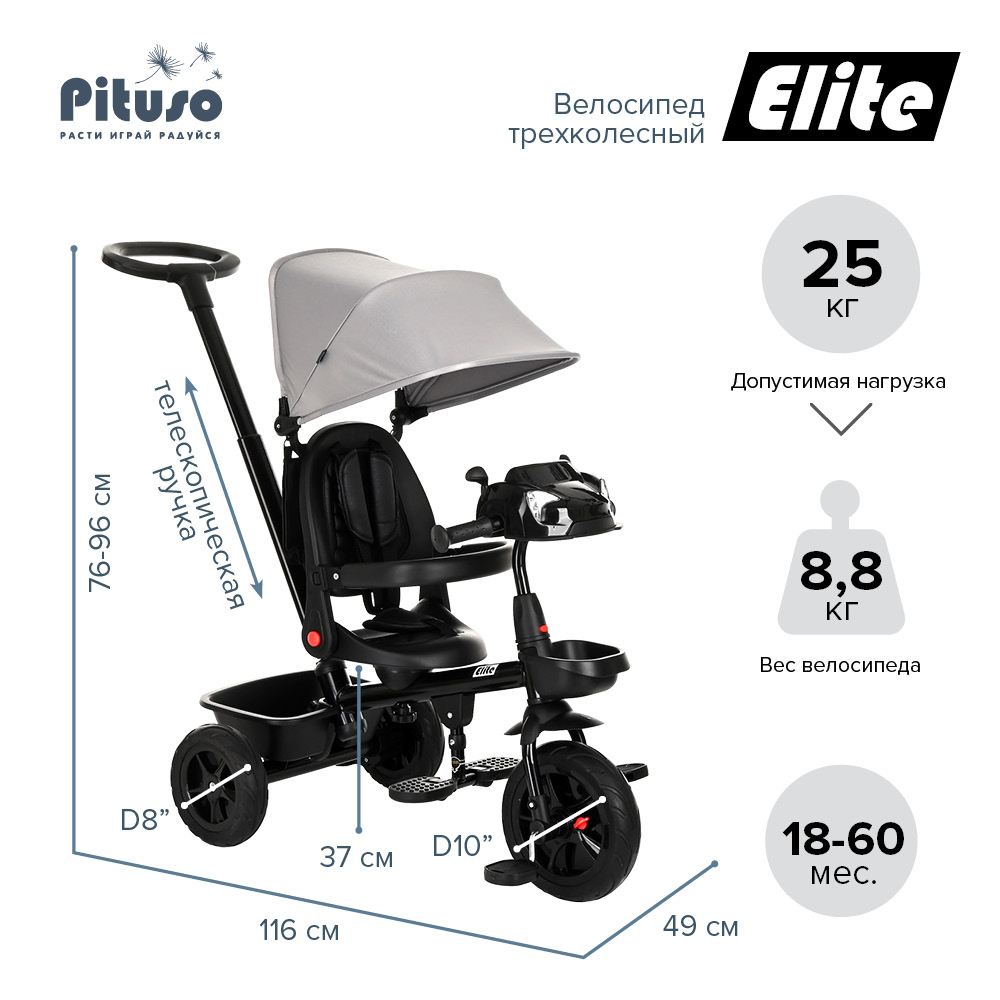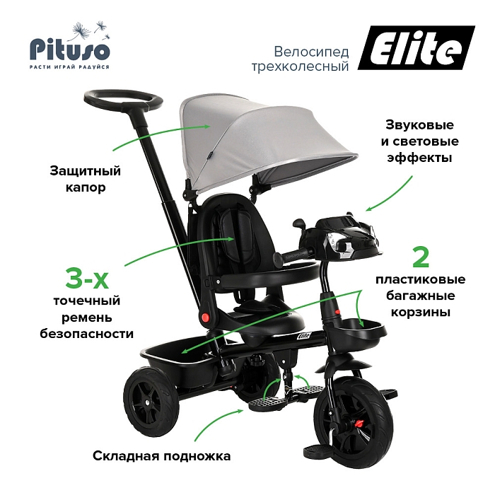 Трехколесный велосипед Pituso Elite Grey/Серый