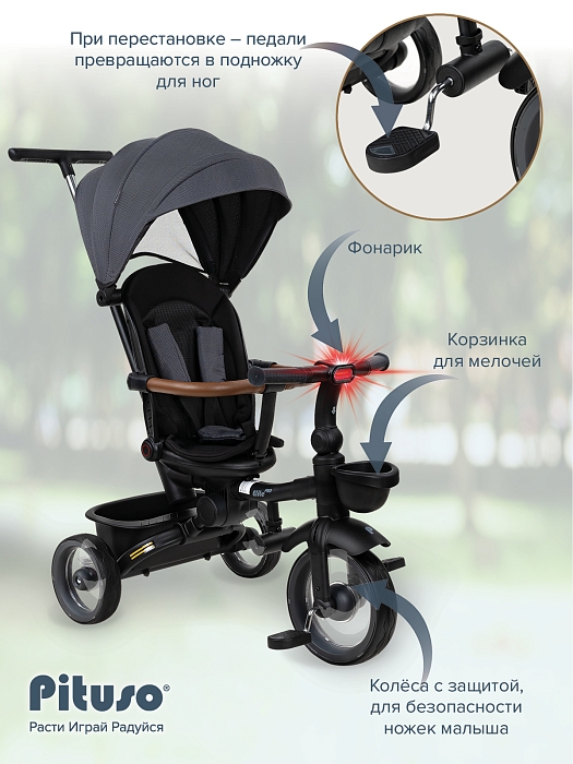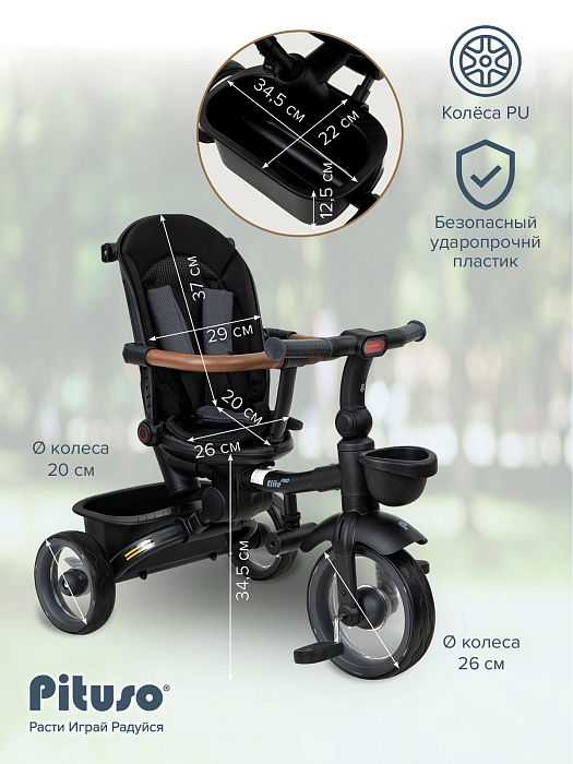 Велосипед трехколесный Pituso Elite Pro Black/Черный