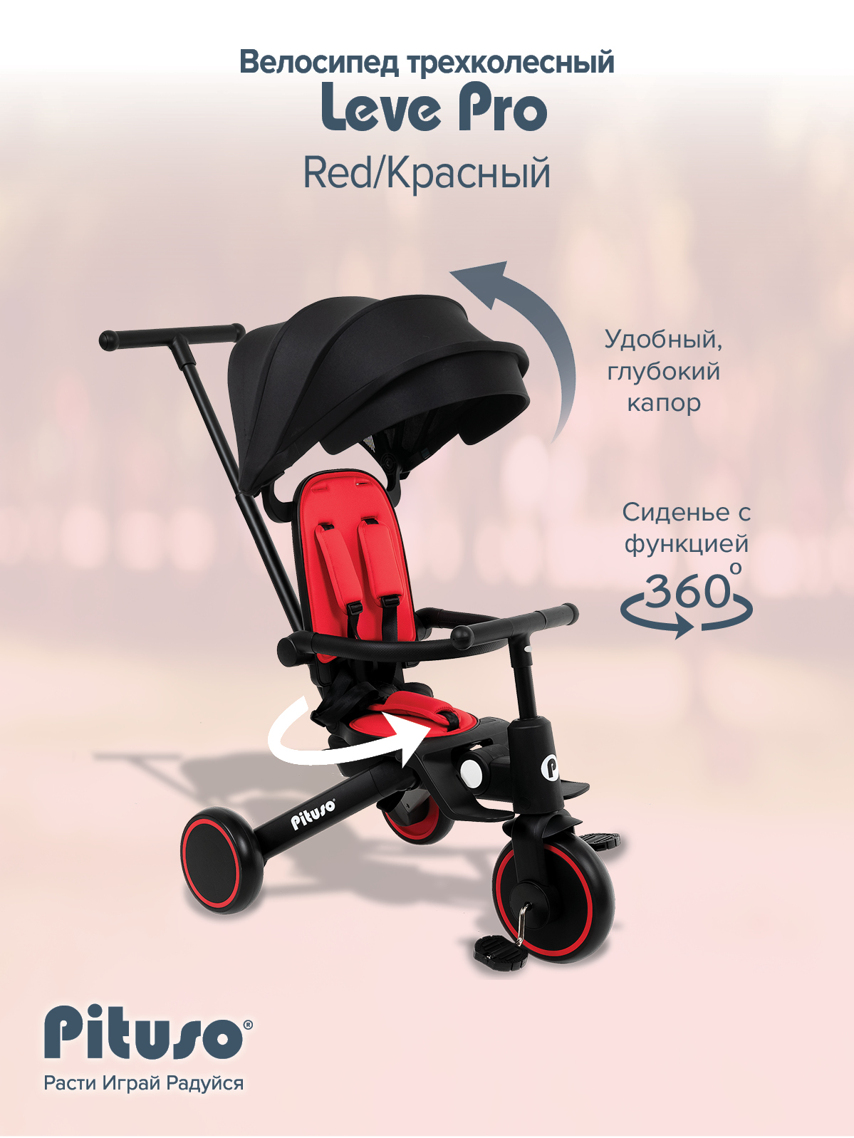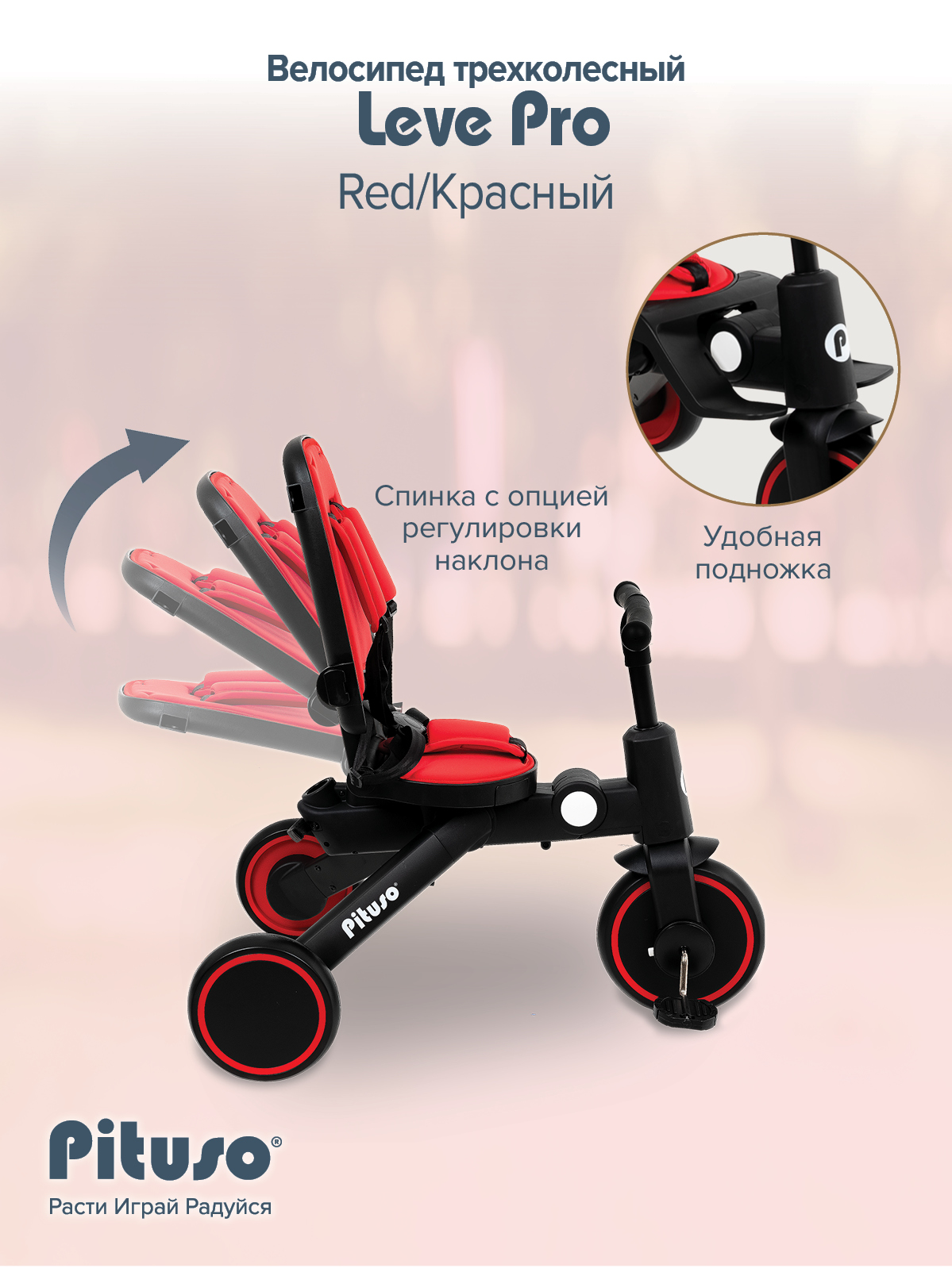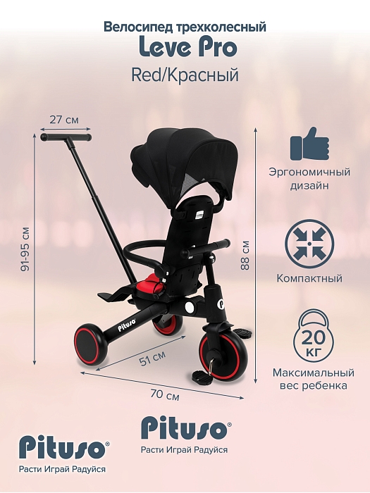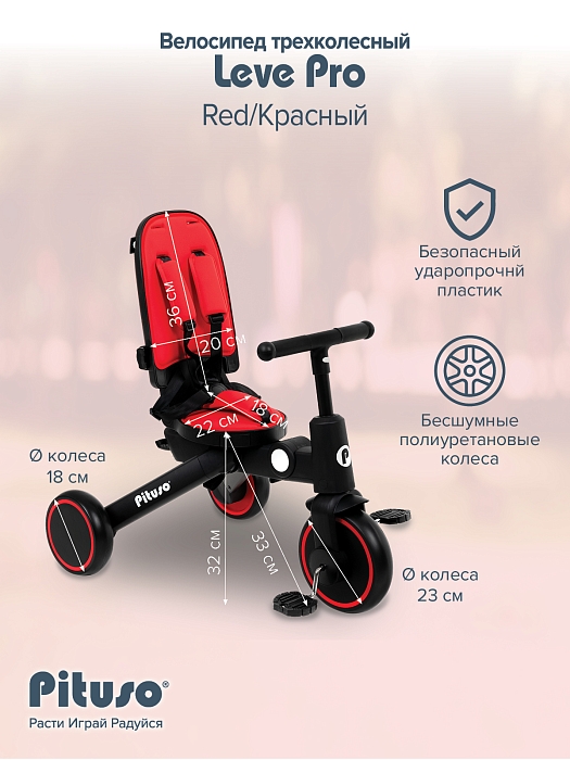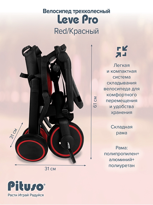 Велосипед трехколесный Pituso Leve Pro Red/Красный