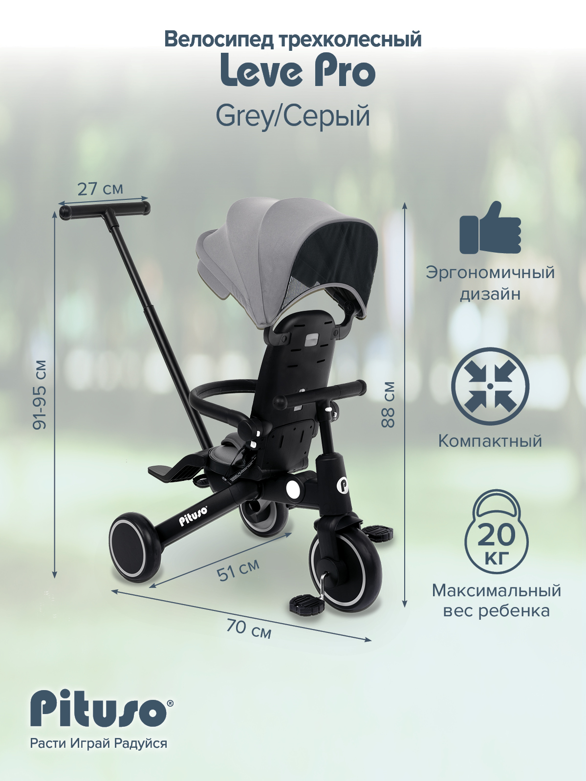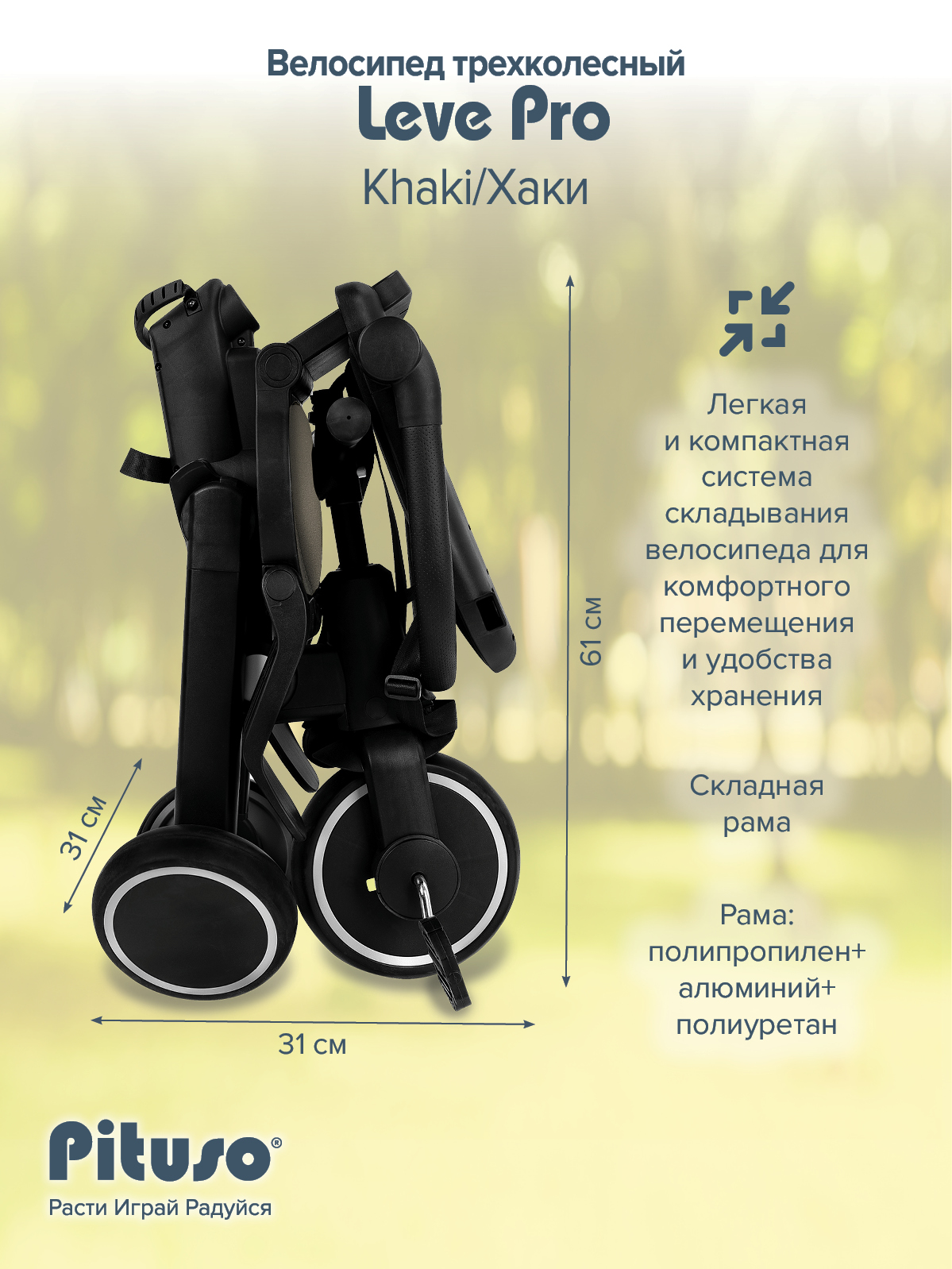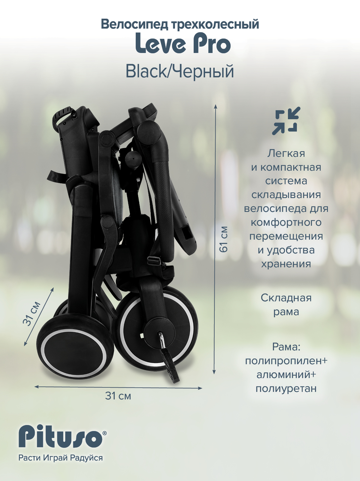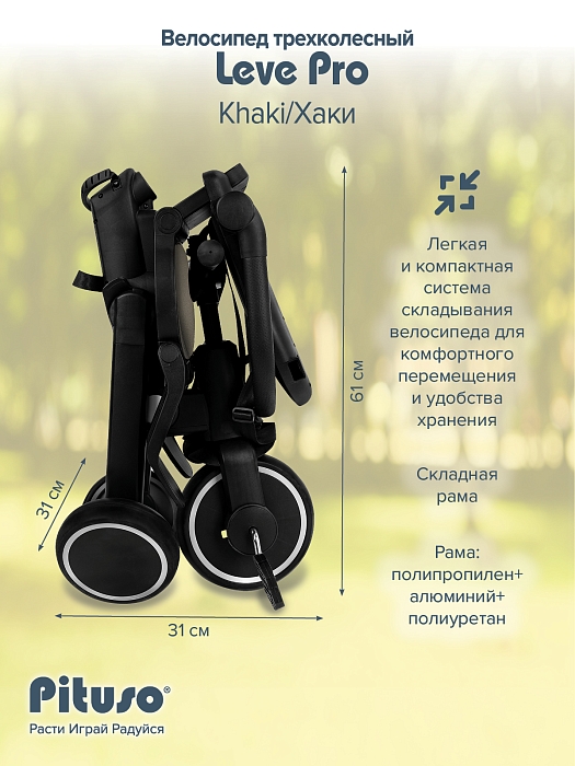Складной трехколесный велосипед Pituso Leve Pro, очень легкий ,