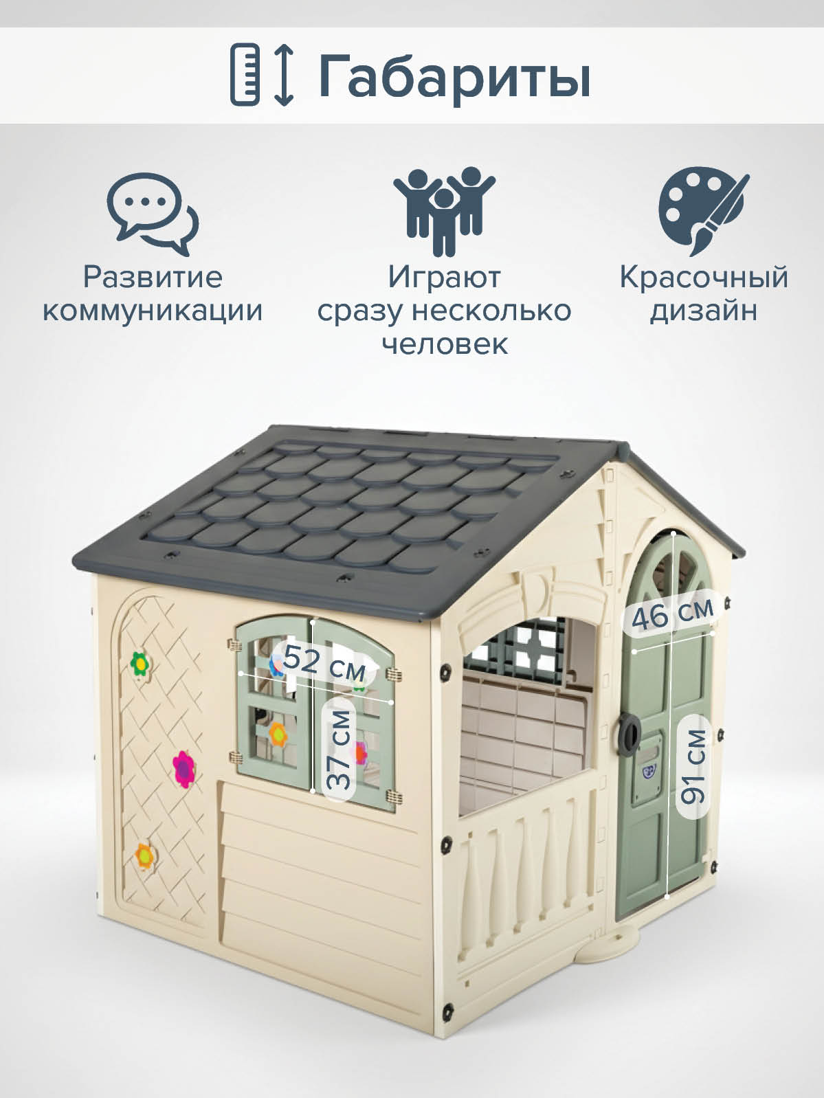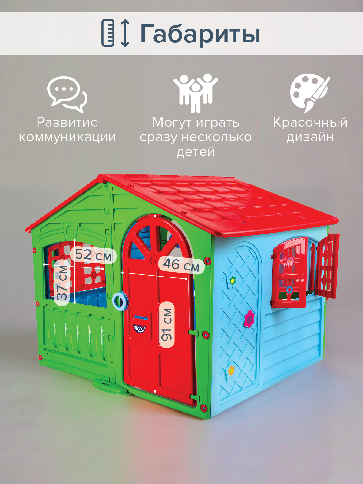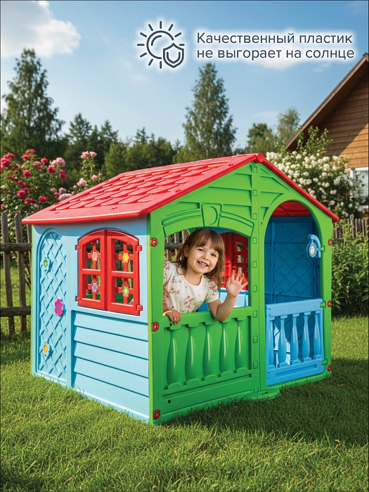 Домик имеет красочный дизайн, имитирующий "реальный дом".