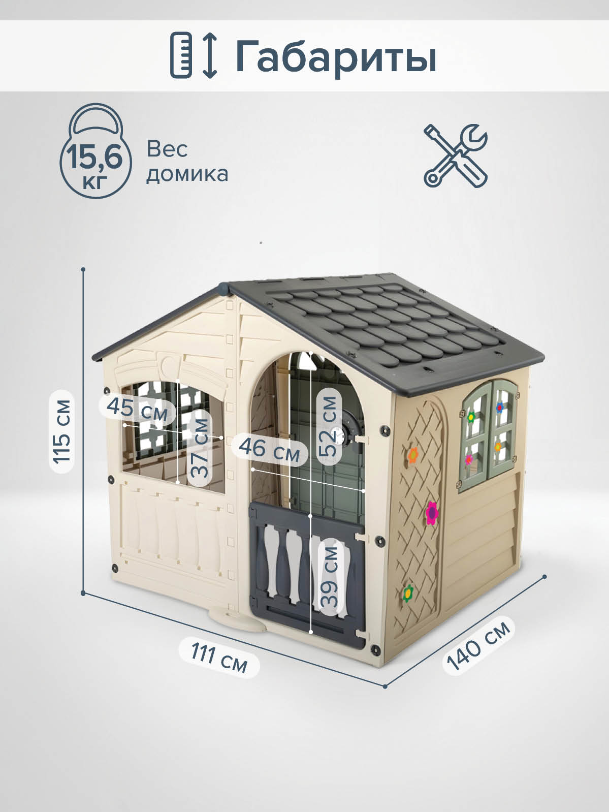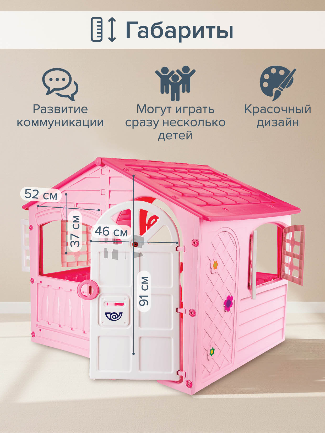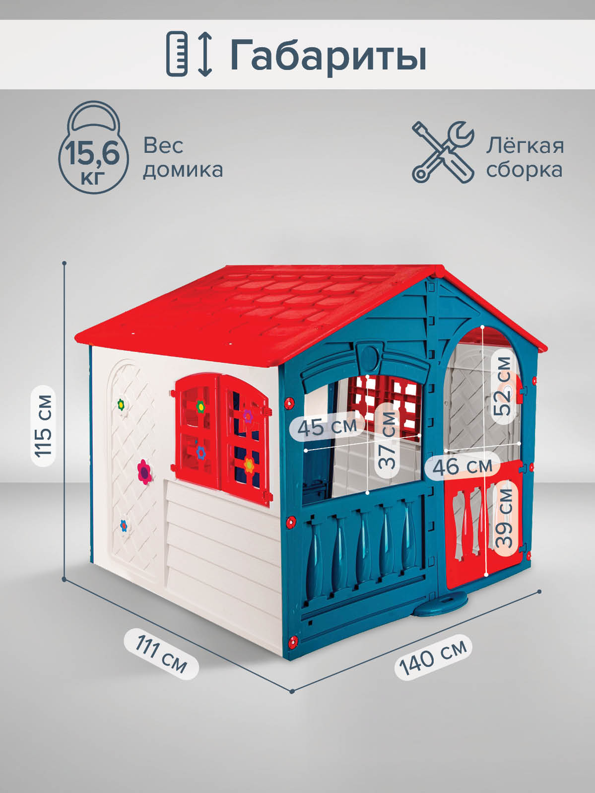 Домик имеет красочный дизайн, имитирующий "реальный дом".