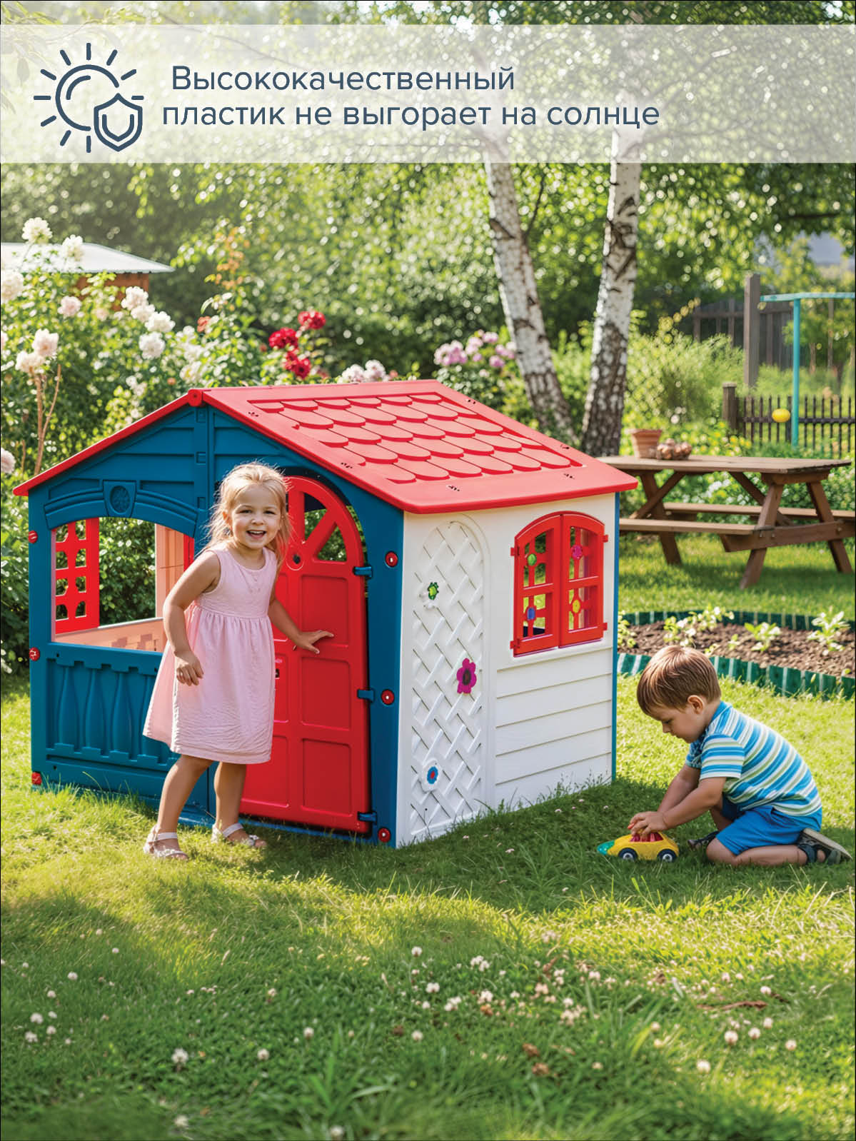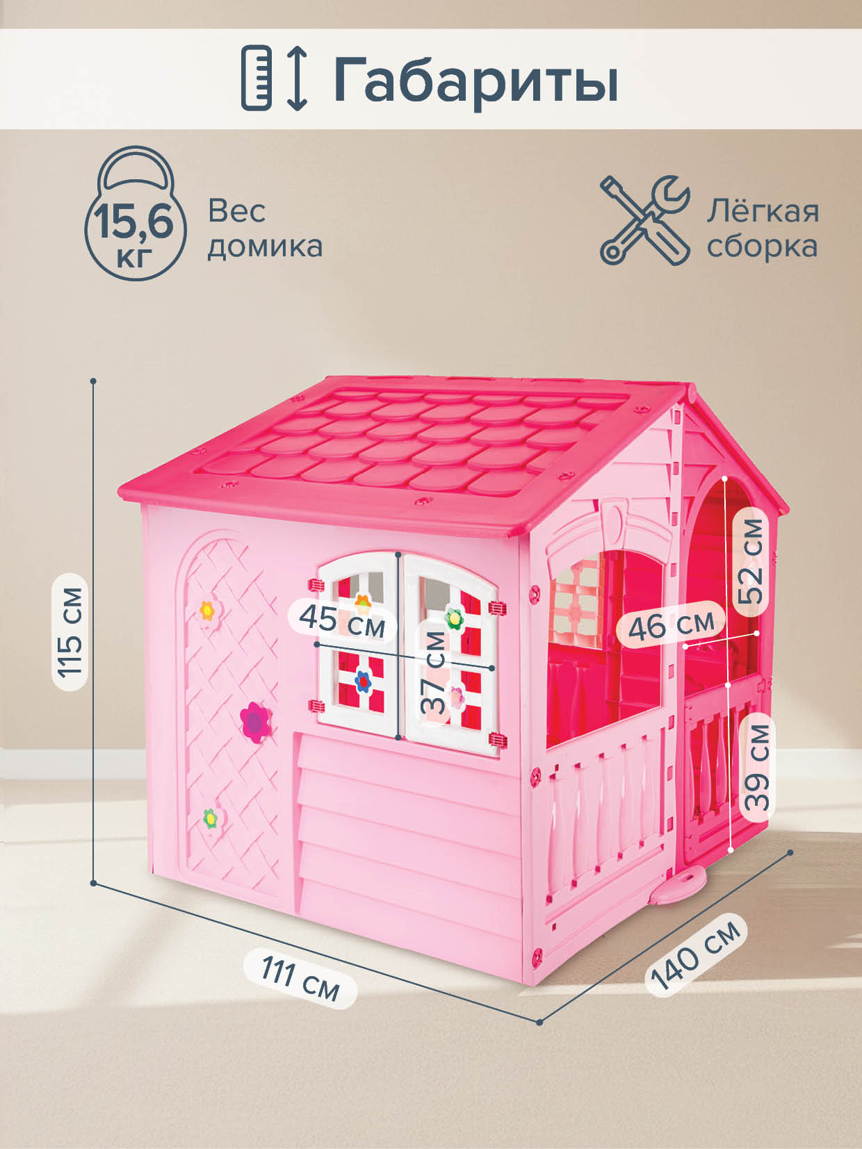Удобная конструкция позволяет легко собирать домик, а также без труда размещать его как в квартире, так и на природе или в саду на даче.