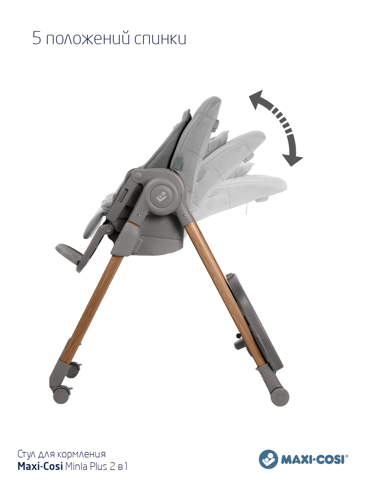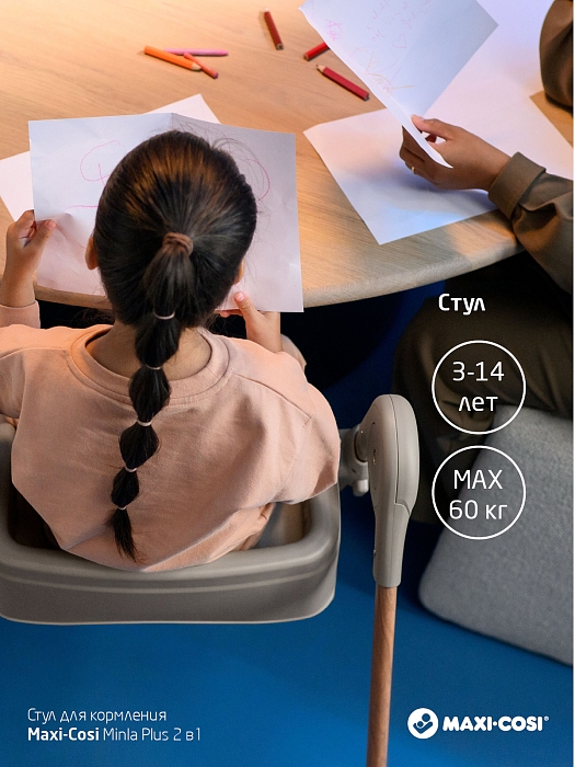 Благодаря полностью регулируемой конструкции, включающей несколько положений спинки, подноса, подставки для ног, Minla Plus обеспечивает максимальный комфорт за столом на протяжении всего периода использования с рождения и до 14 лет.