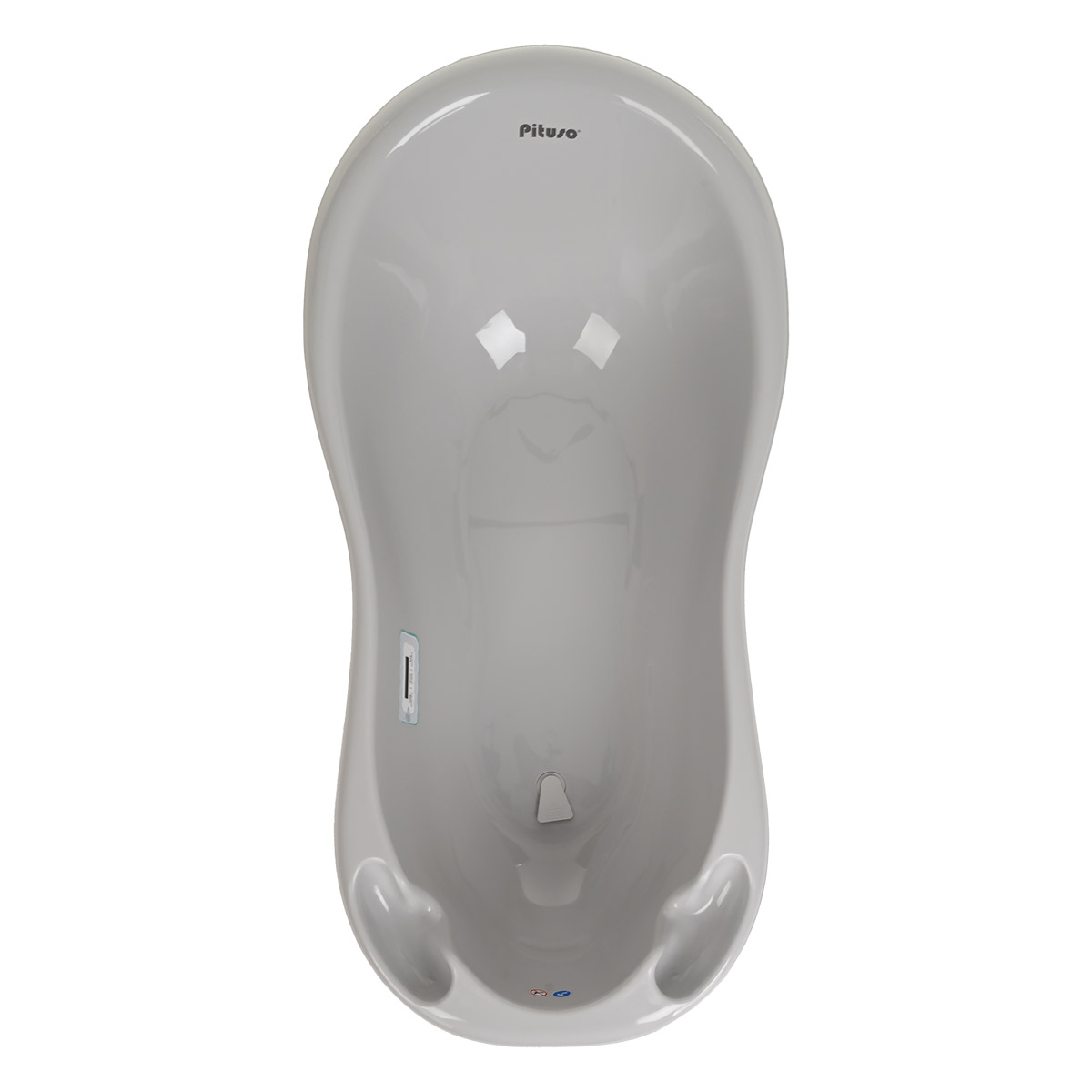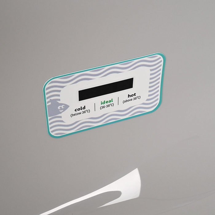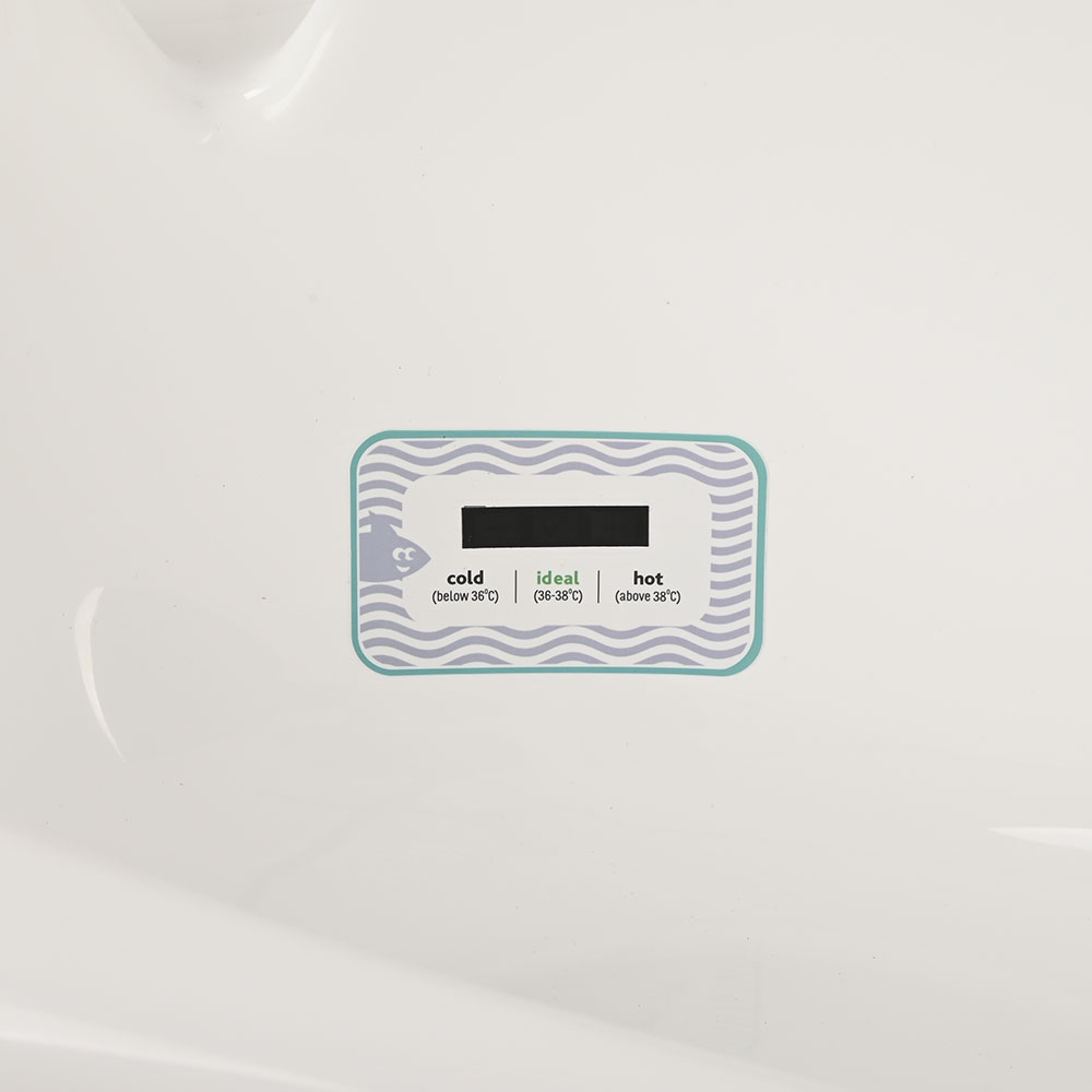 Встроенный термометр с понятными обозначениями поможет определить идеальную температуру воды для купания малыша (36-38°С).