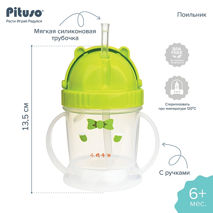 Поильник с ручками и с трубочкой. Изделие подходит для малышей, которые учатся пить самостоятельно.