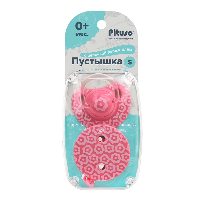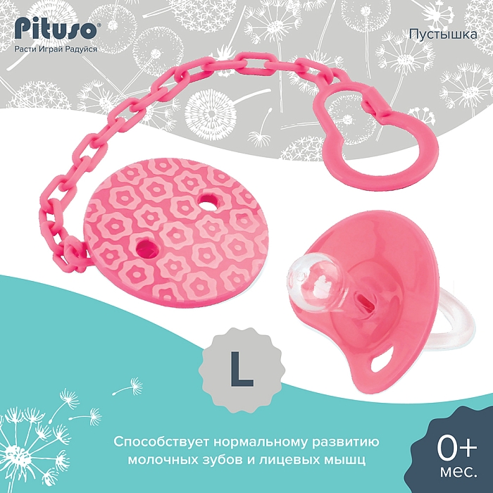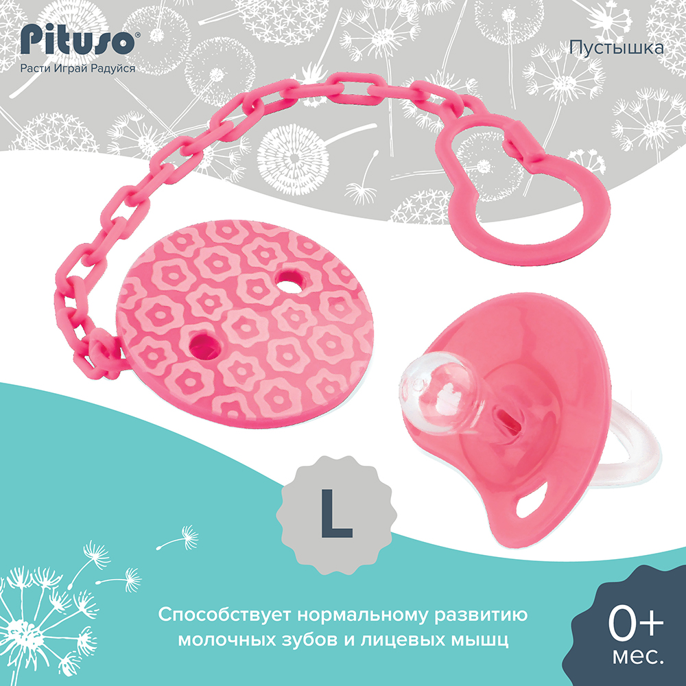 Пустышка силиконовая Pituso + держатель размер L Pink/розовый
