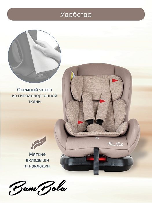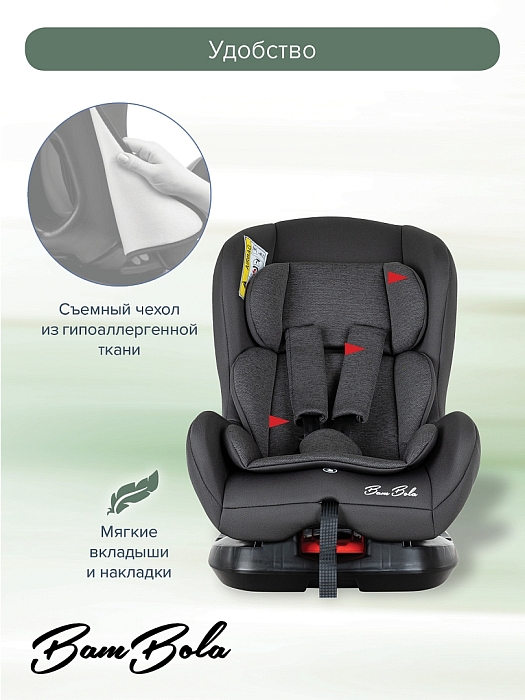 Благодаря ортопедической форме спинки и регулировки наклона автокресла в пяти положениях, мягкому вкладышу и накладкам внутренних ремней безопасности ребенку удобно и комфортно в поездке.