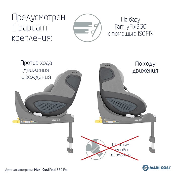 - При использовании с вращающейся выдвижной базой FamilyFix 360 Pro (продается отдельно) с технологией SlideTech™ Pearl 360 Pro становится единственным автокреслом для малышей, которое одновременно вращается и сдвигается к вам.