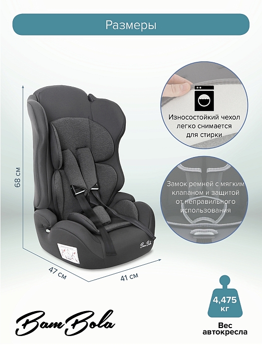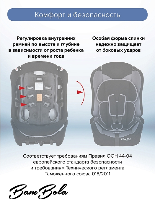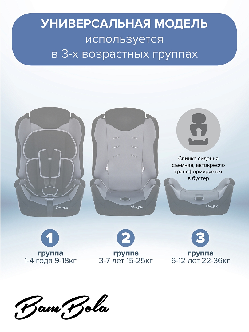 Детское автомобильное кресло Bambola Primo предназначено для детей от 1 года до 12 лет весом от 9 до 36 кг. Отличительным свойством автокресла является его универсальность: по мере роста ребенка, кресло легко трансформируется в бустер. Кресло имеет мягкий съемный подголовник и съемный чехол, изготовленный из гипоаллергенного материала. Для малышей от 1 года до 4 лет автокресло оборудовано внутренними пятиточечными ремнями, которые регулируются по высоте в зависимости от роста ребенка и по глубине специально под зимнюю одежду.
