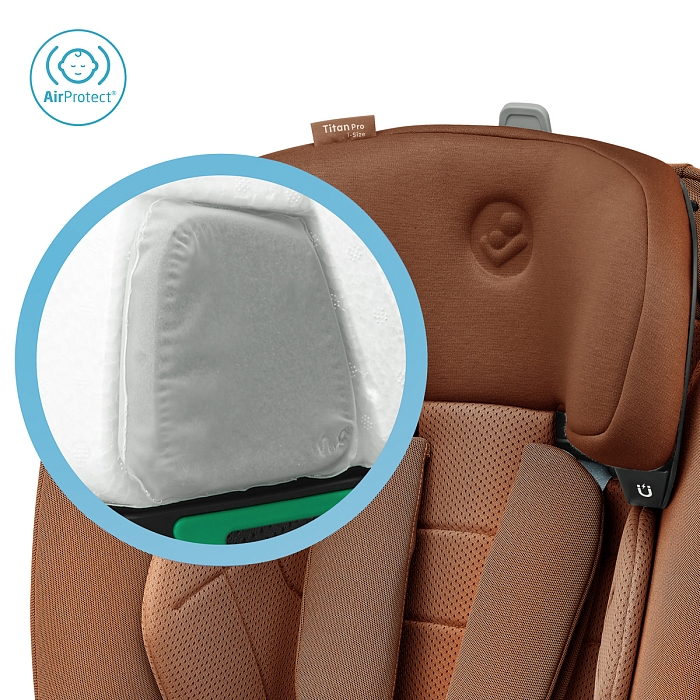 Titan Pro i-Size — лучший защитник. Это автокресло отвечает наивысшему стандарту безопасности i-Size. Поскольку 45 % ударов приходится на боковые стороны, Titan Pro i-Size оснащен запатентованными подушками безопасности AirProtect® в подголовнике, которые снижают риск травм головы до 20 % и повышают комфорт для вашего ребенка. Это универсальное автокресло оснащено защитой от бокового удара благодаря запатентованной технологии G-Cell 2.0; Гибкий, но прочный материал предназначен для распределения силы удара от вашего ребенка, чтобы уменьшить травму.