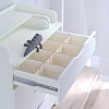 В комплекте одна длинная и три коротких (поперечных) стенки. Благодаря семи прорезям на длинной стенке, можно с легкостью переставить поперечные стенки, создавая более узкие или широкие отделения для хранения детской одежды и других вещей.
