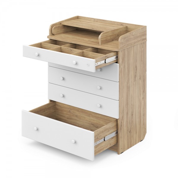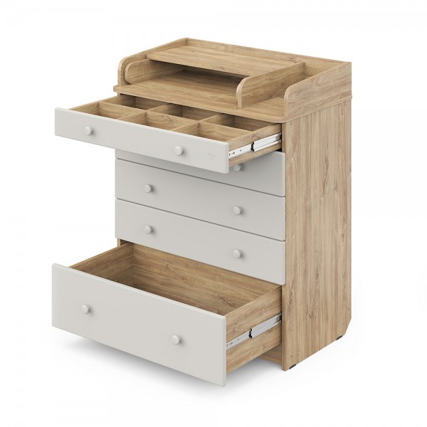 - В комоде используется пеленальный столик с простым и надежным, скрытым механизмом раскладывания.