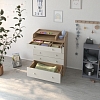 - Нижний ящик большей глубины, а верхний с органайзером для удобства сортировки детских вещей.