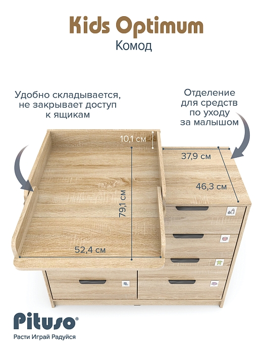 Комод Pituso Kids Optimum Дуб сонома (2 места)