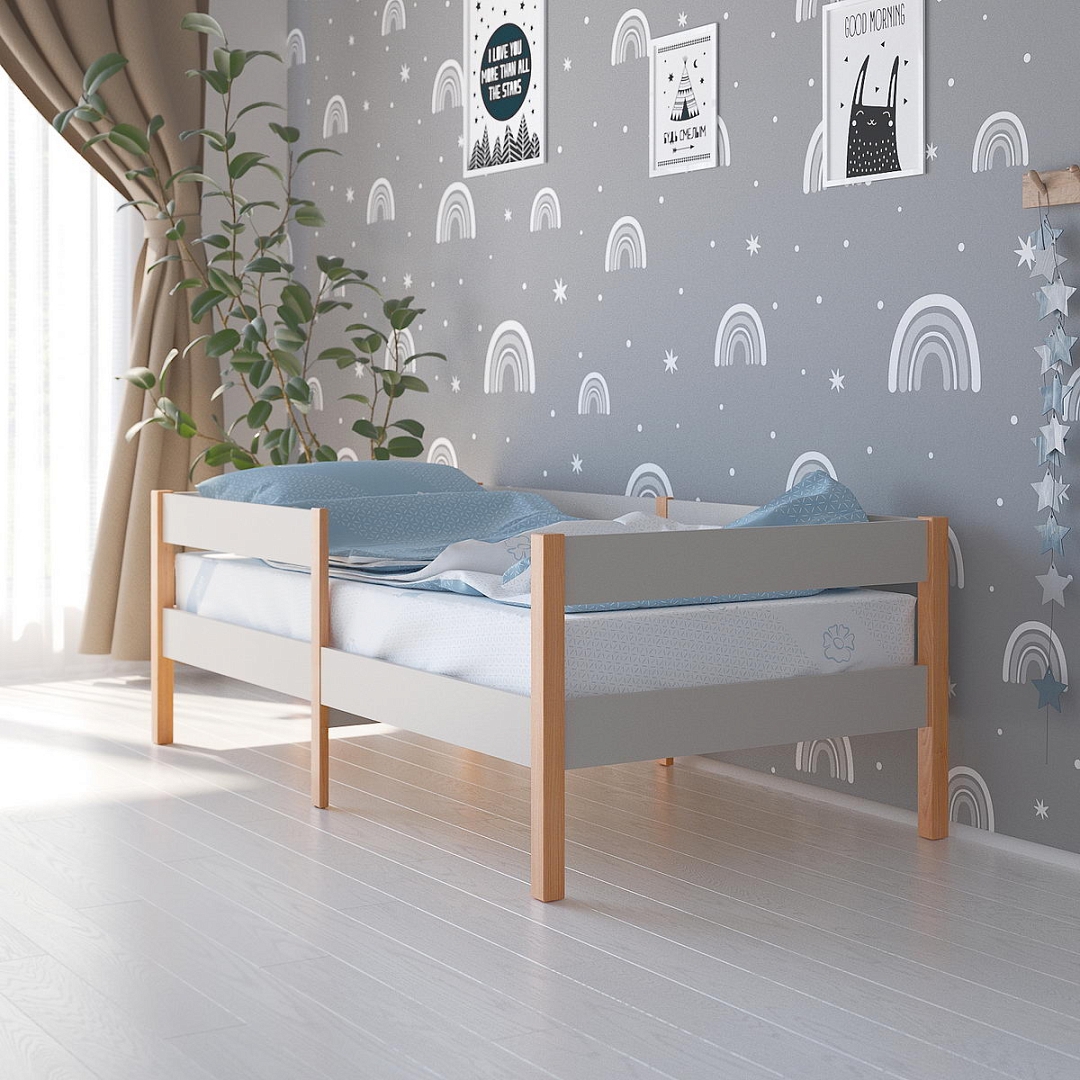Это очень надежная и удобная кроватка для детей от 3 лет. Она разработана в современном скандинавском стиле из экологически чистых материалов и отлично подходит как для мальчиков, так и для девочек. Бортики выполнены из безопасного и практичного ЛДСП. Ножки кровати – из высококачественного дерева – массива сосны, покрытой полимерной краской. В отличие от дешевых красок на водной основе, полимерные покрытия, используемые в данной кровати, более безопасные, практичные и придают деталям более глубокий, насыщенный цвет. Дно кровати выполнено из гнутых березовых латофлексов, скрепленных лентой для удобства монтажа, обеспечивающих ортопедическую упругость и выдерживают впечатляющую распределенную нагрузку до 100 кг (при использовании матраса). Передний бортик кровати можно установить на правую и левую сторону, что позволяет поставить её в интерьере так, как будет удобно вам и вашему ребенку.