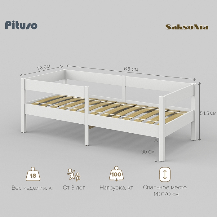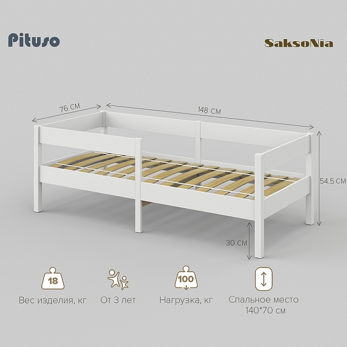 Кровать подростковая Pituso Saksonia 140х70 см Белый-белый